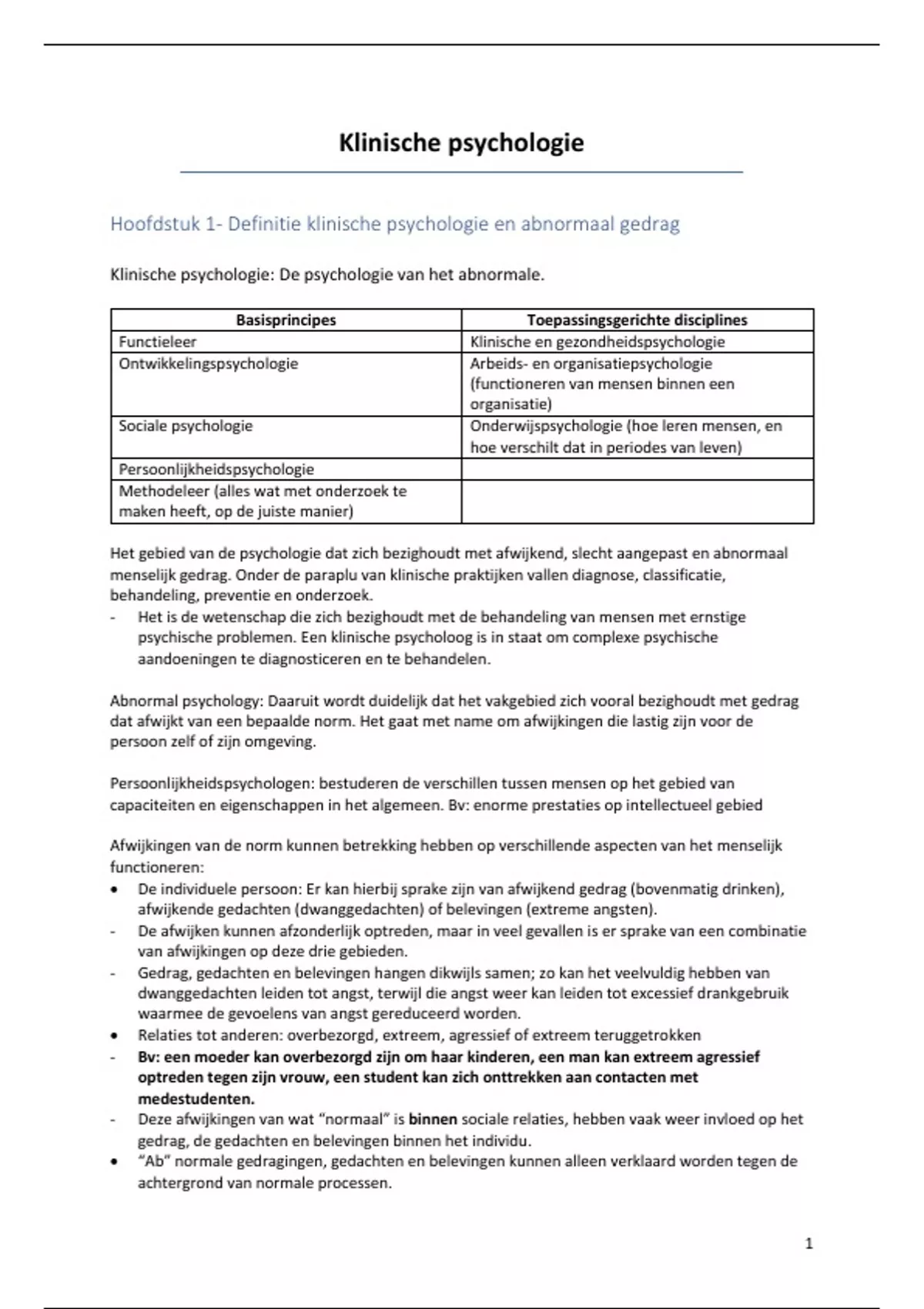 Hoofdstuk 1- Definitie klinische psychologie en abnormaal gedrag