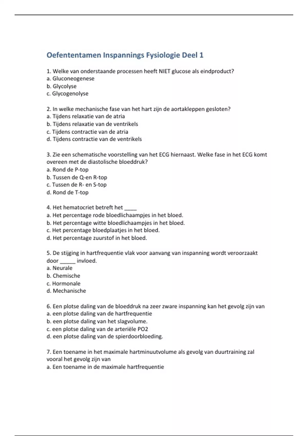 Oefententamen Inspannings Fysiologie Deel 1