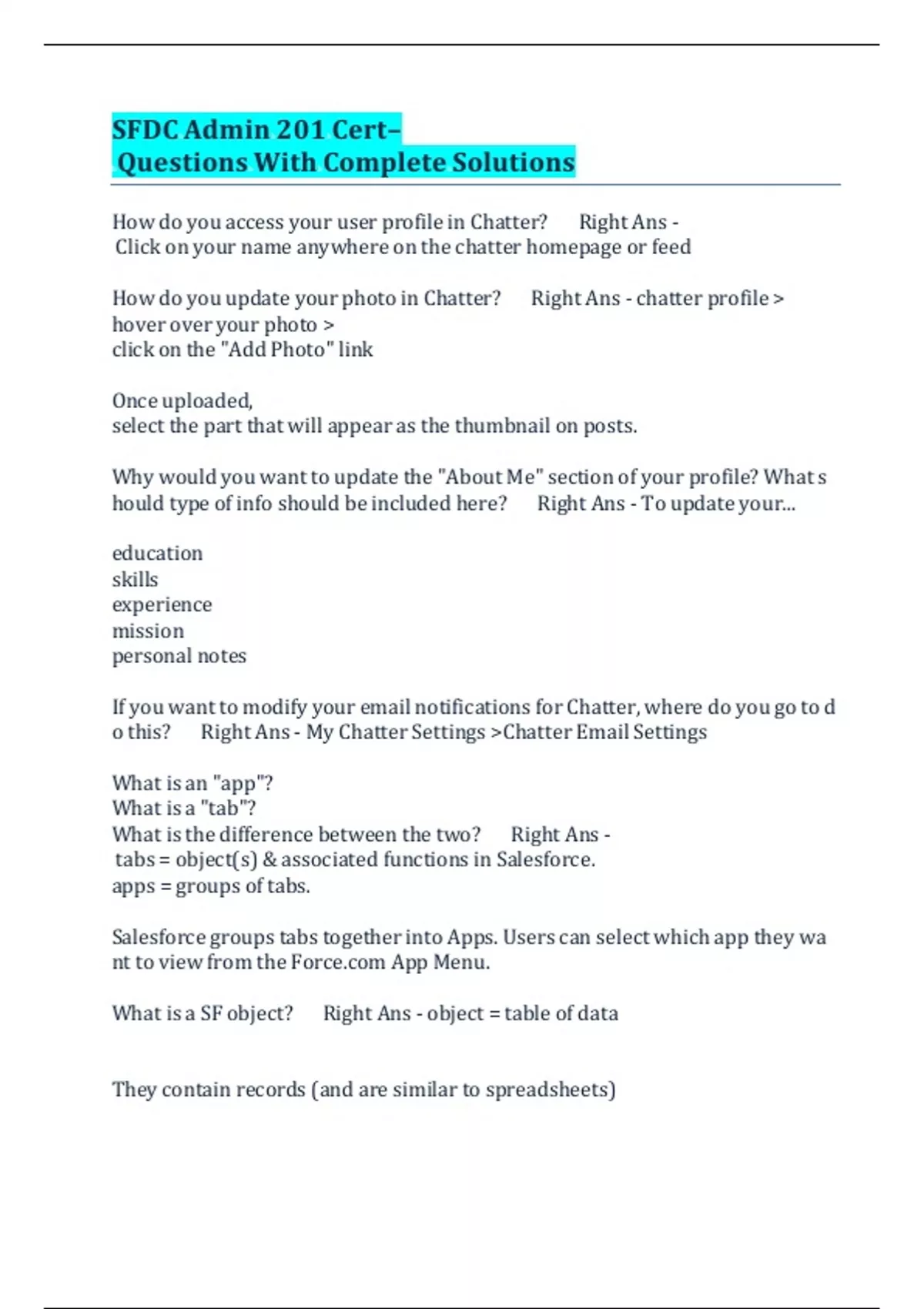 SFDC Admin 201 Cert– Questions With Complete Solutions