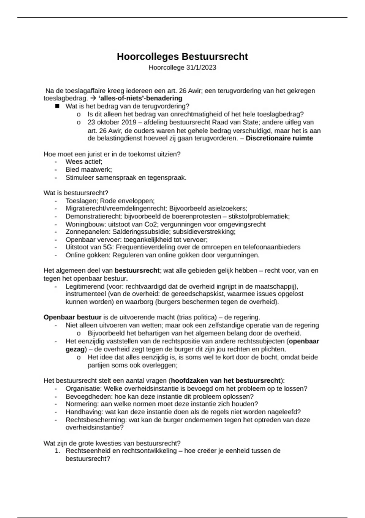 Hoorcolleges en samenvatting inleiding bestuursrecht