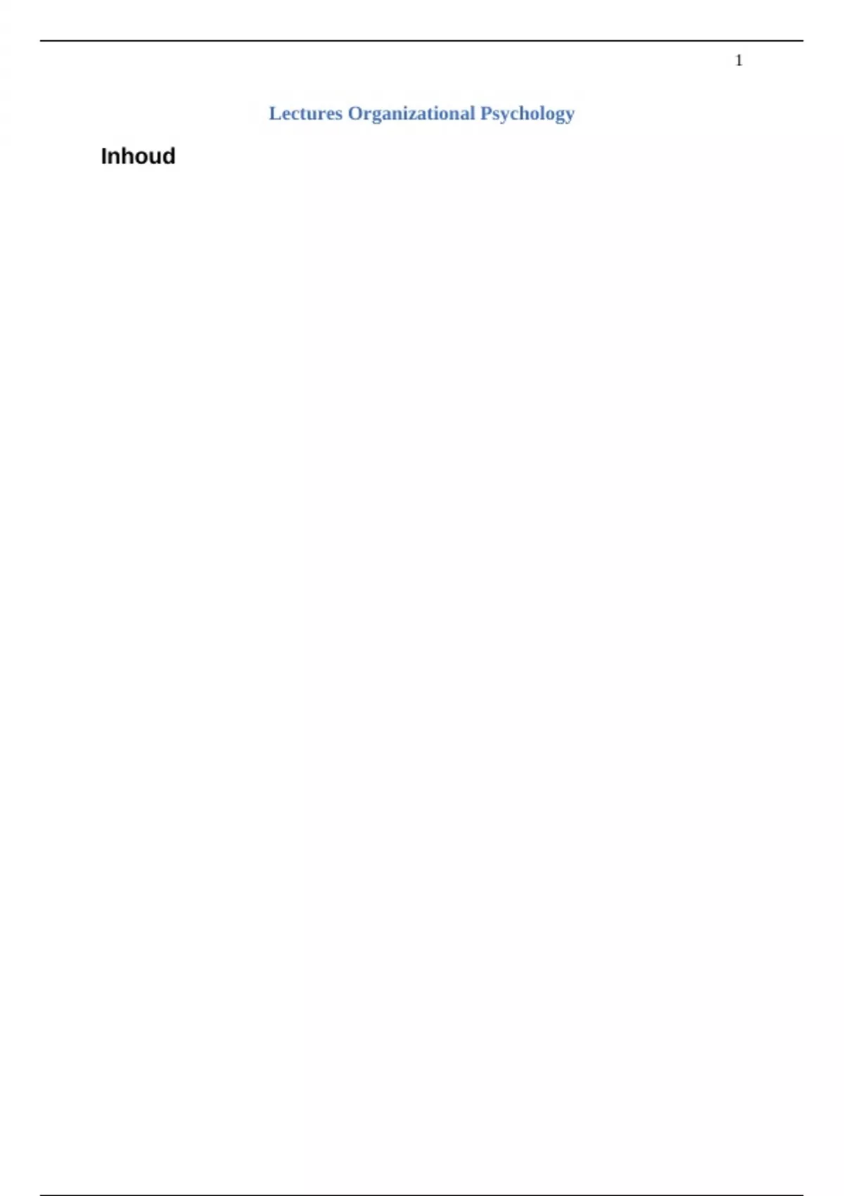 Lecture 1: Introduction Organizational Psychology