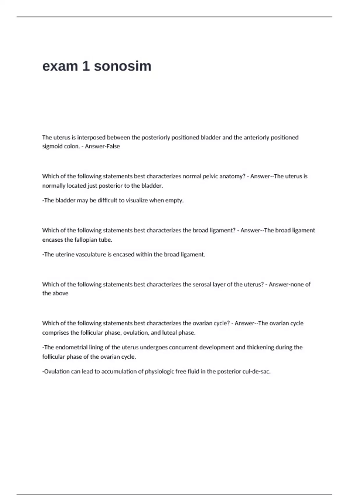 Which of the following statements best characterizes normal pelvic anatomy? - Answer--The uterus is
