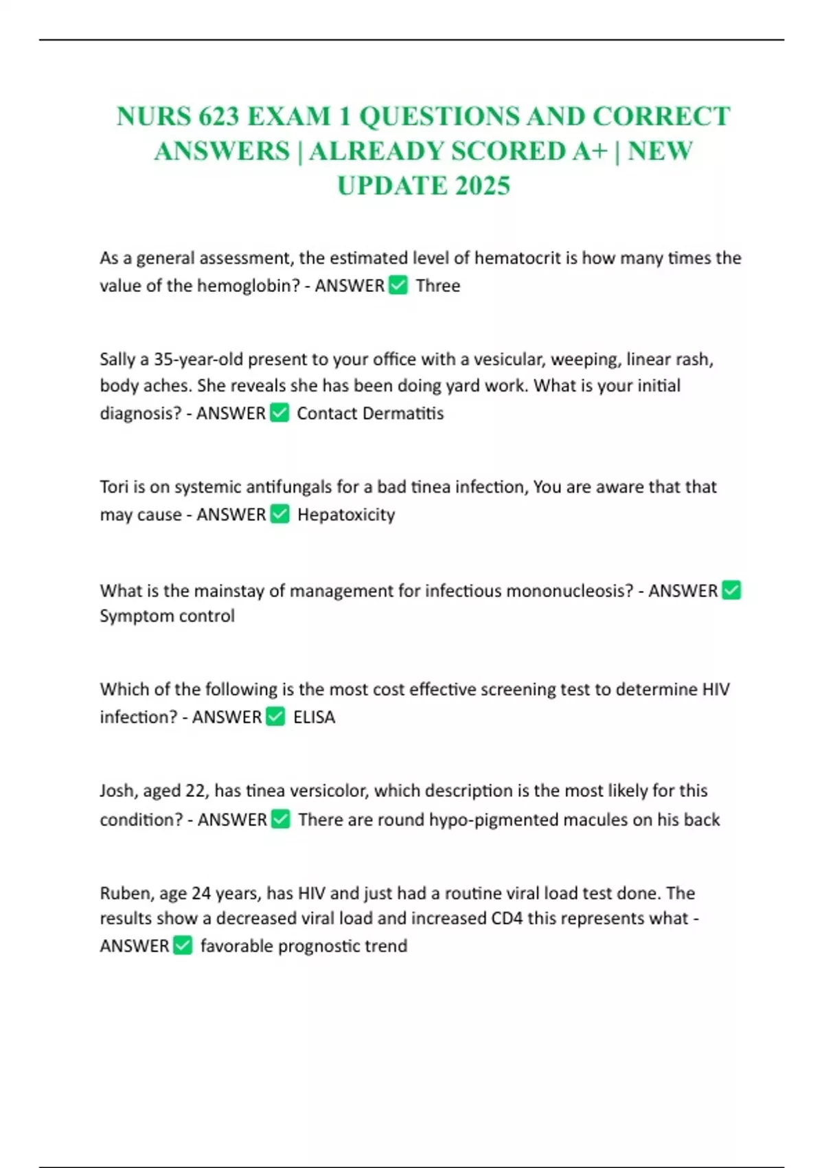 NURS 623 EXAM 1 QUESTIONS AND CORRECT ANSWERS | ALREADY SCORED A+ | NEW UPDATE 2025
