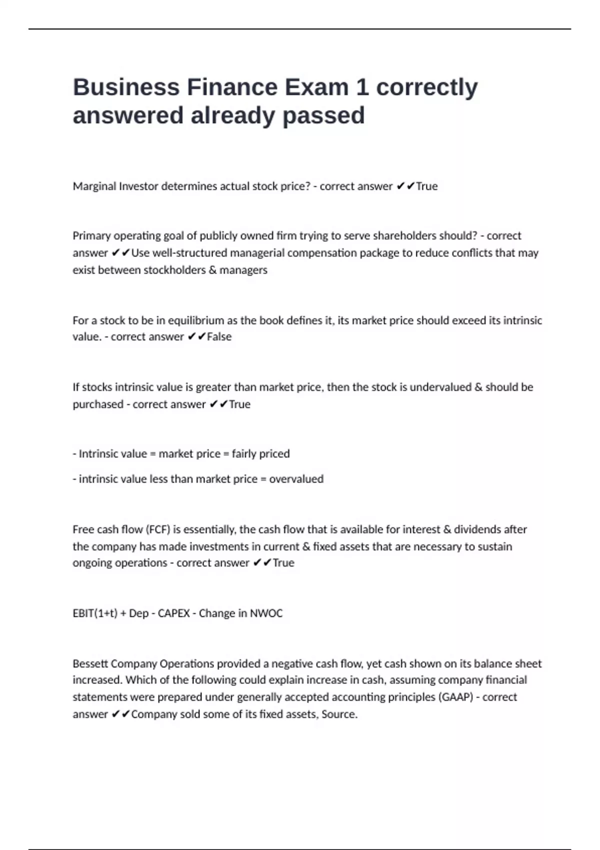 Marginal Investor determines actual stock price? - correct answer ✔✔True