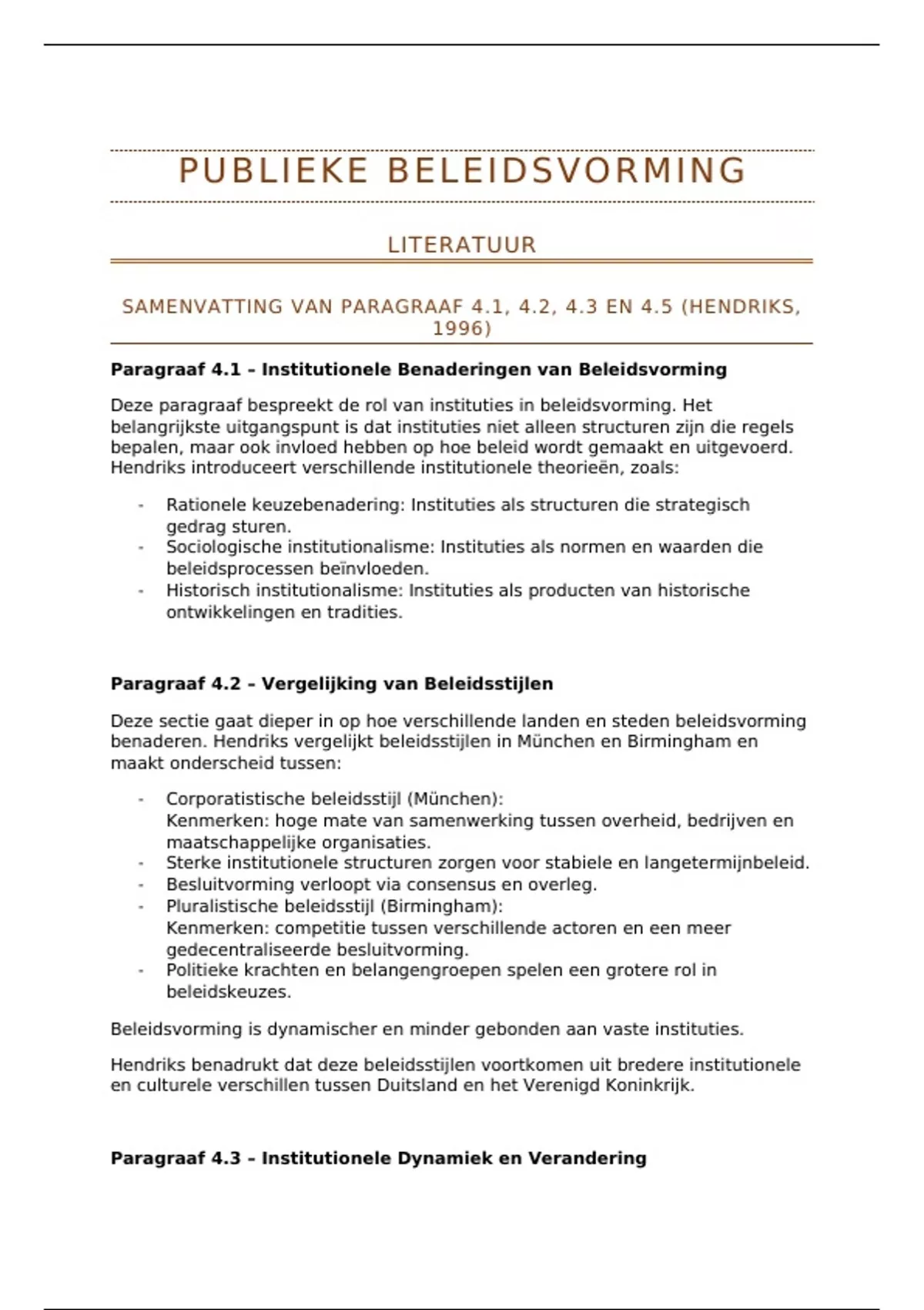 Paragraaf 4.1 – Institutionele Benaderingen van Beleidsvorming