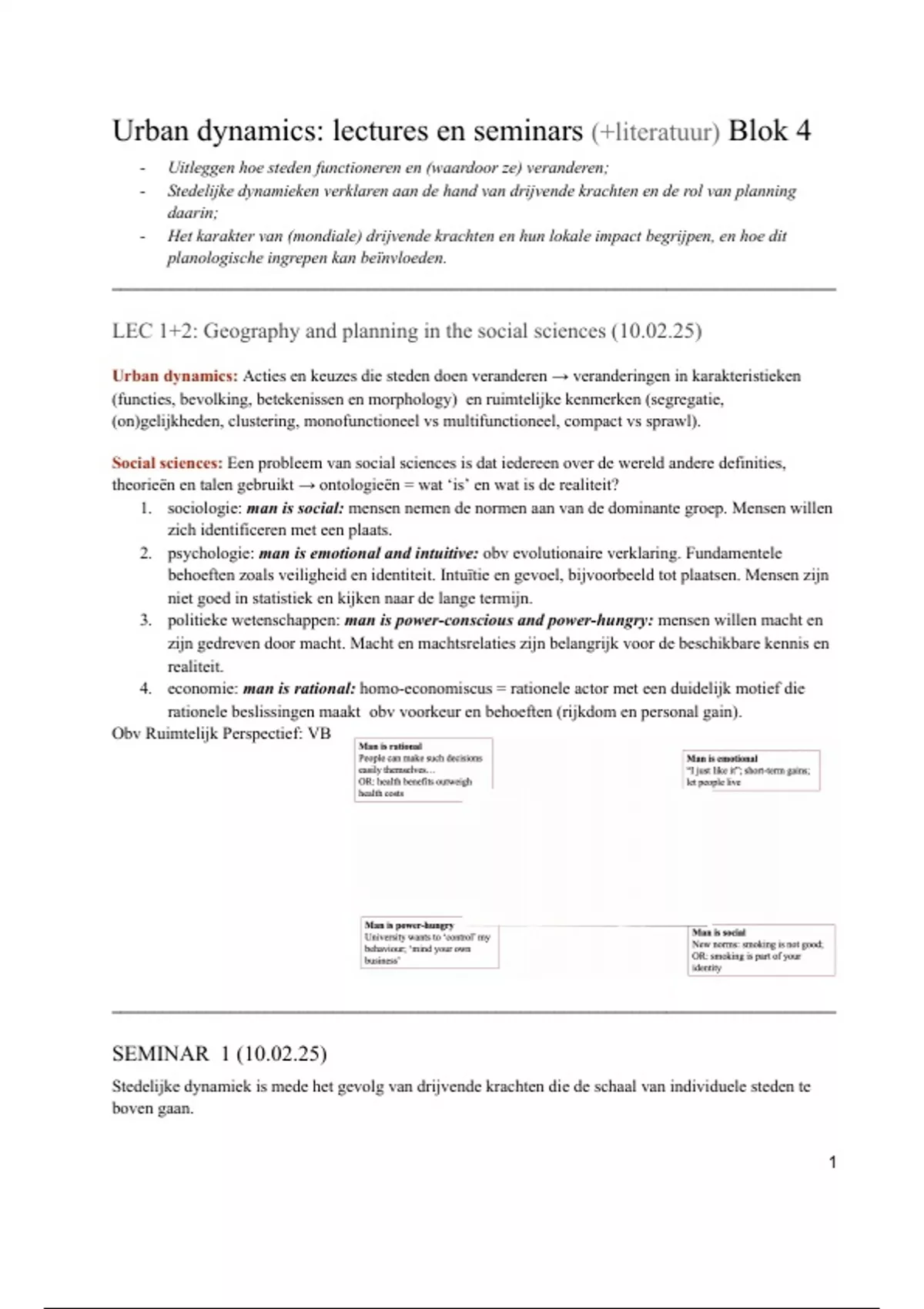 Urban dynamics: lectures en seminars (+literatuur) Blok 4