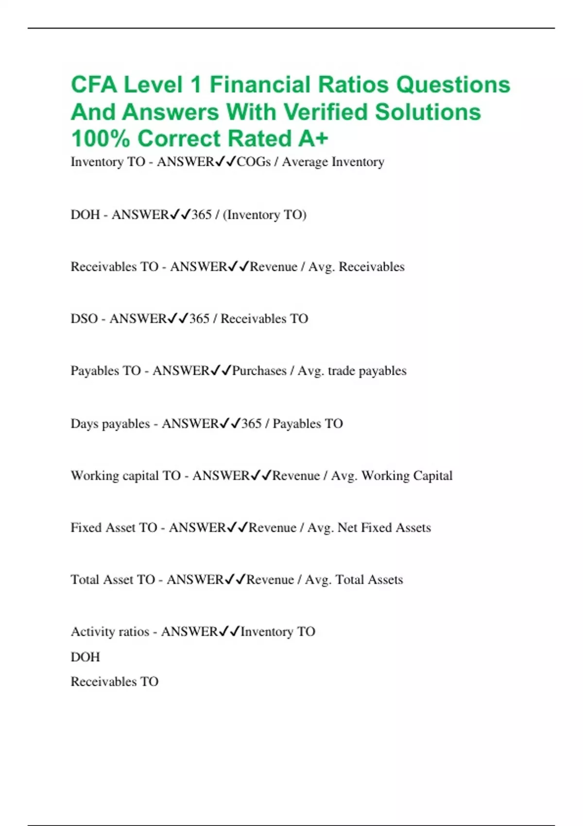 Total Asset TO - ANSWER✔✔Revenue / Avg. Total Assets