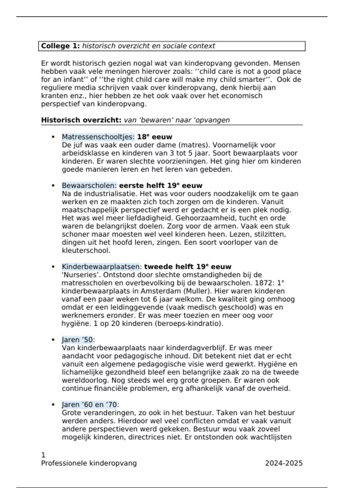 Professionele kinderopvang 2024-2025