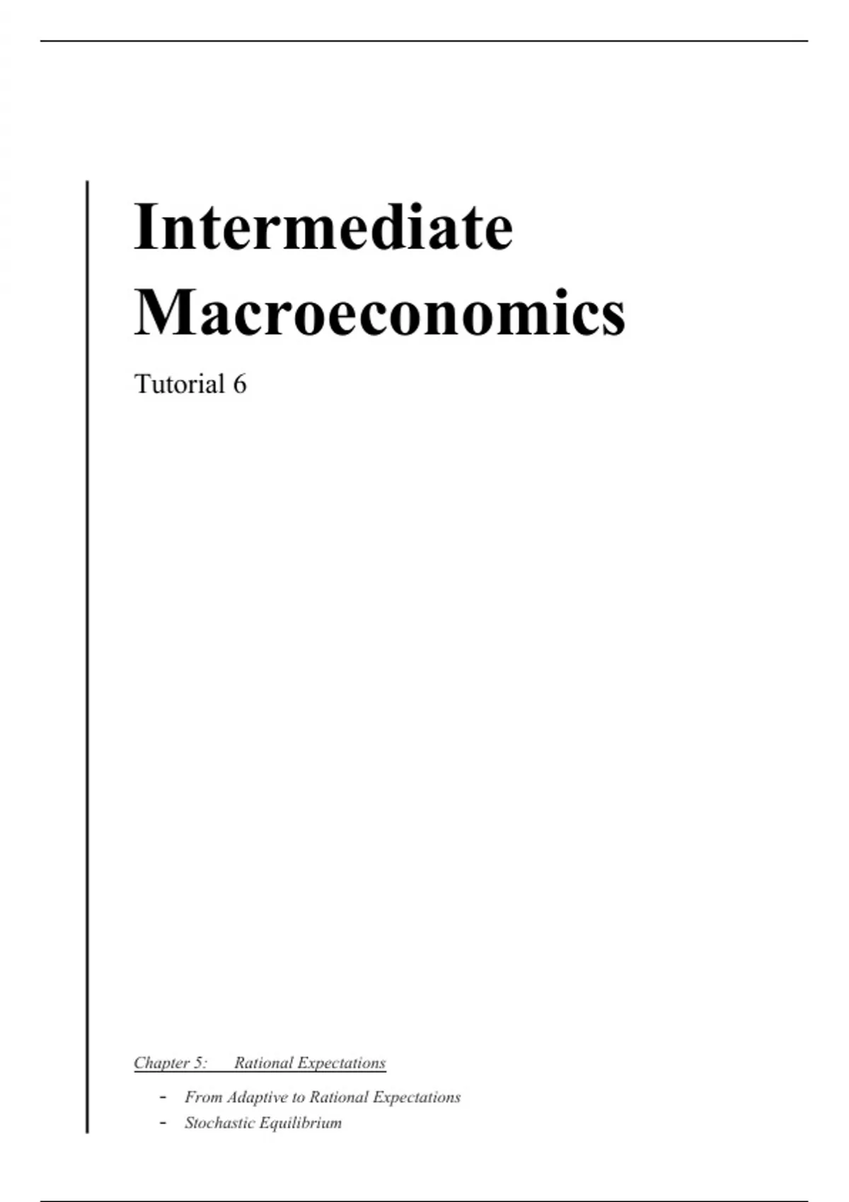 A summary of Intermediate Macroeconomics with fully worked-out solutions and clear explanations for all tutorial questions of week 6 from Chapter 5. This comprehensive guide provides detailed, step-by-step solutions with intuitive reasoning, helping you understand not just the how but also the why behind each answer. The document contains exercises 1, 2, 3, and 5 of Chapter 5, which are recommended for the course IM at RuG University.