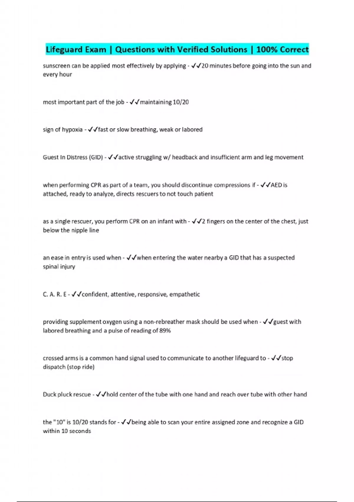 lifeguard exam questions with verified solutions