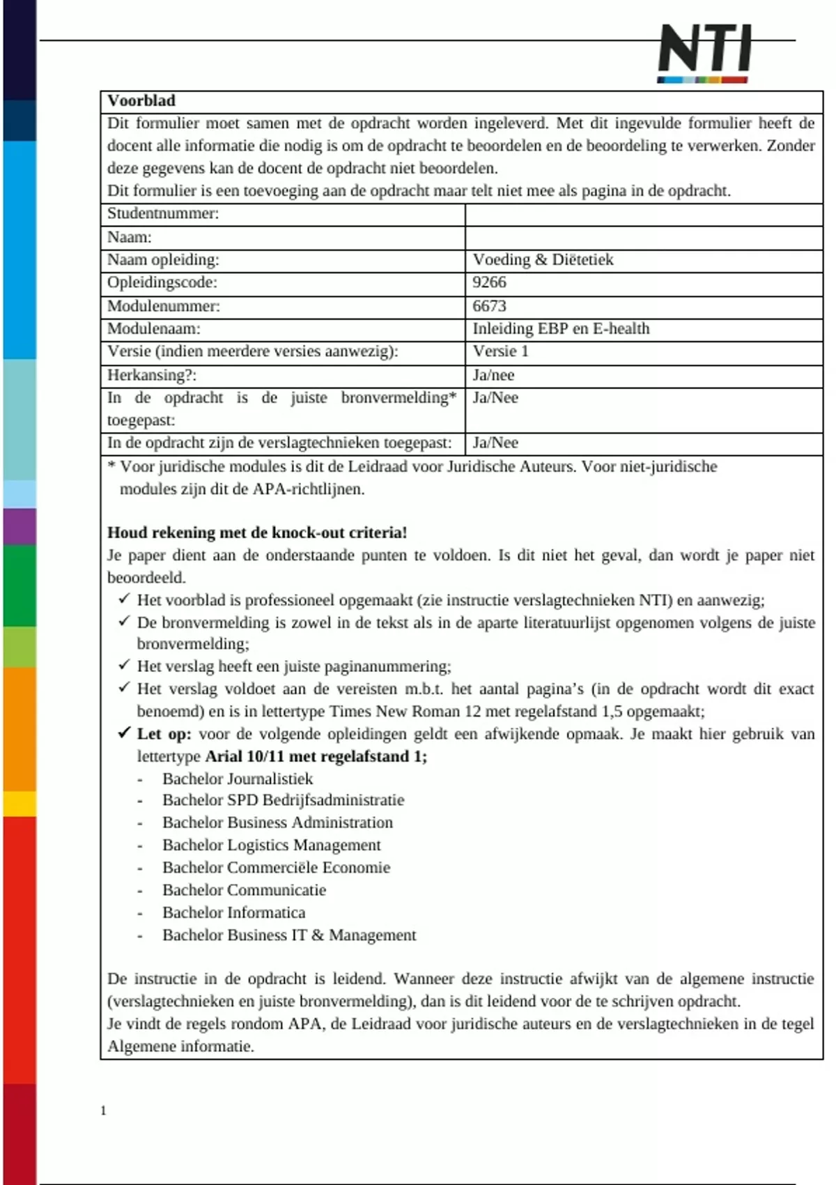 Let op: voor de volgende opleidingen geldt een afwijkende opmaak. Je maakt hier gebruik van