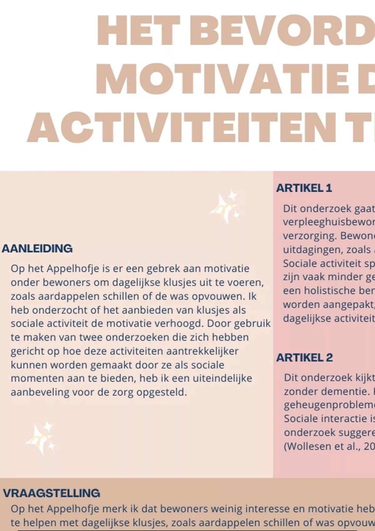 Presentatie van 1 pagina's voor het vak Verpleegkunde aan de Hanze (EBP in de praktijk)