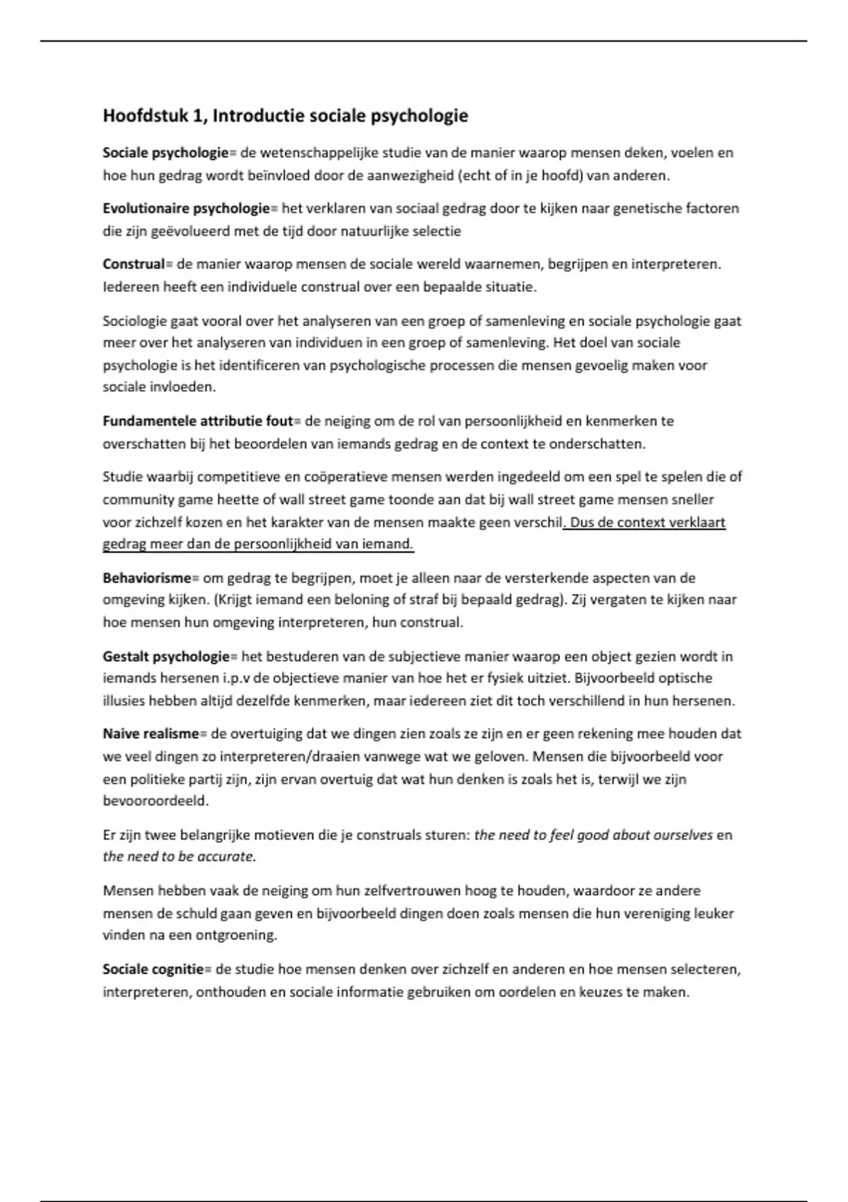 Hoofdstuk 1, Introductie sociale psychologie
