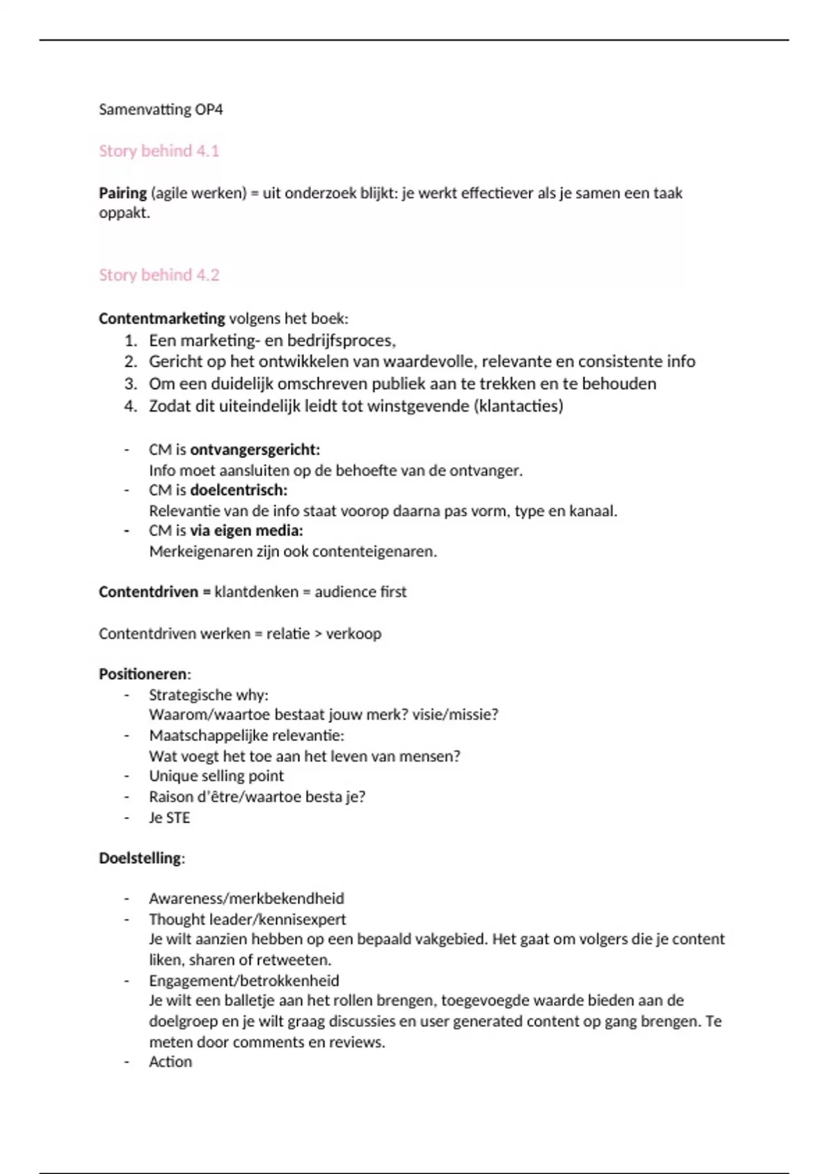 Dit document is een samenvatting van het onderdeel contentcreatie OP4. Er zijn 6 story behinds in opgenomen. Zo haal jij je tentamen! :)