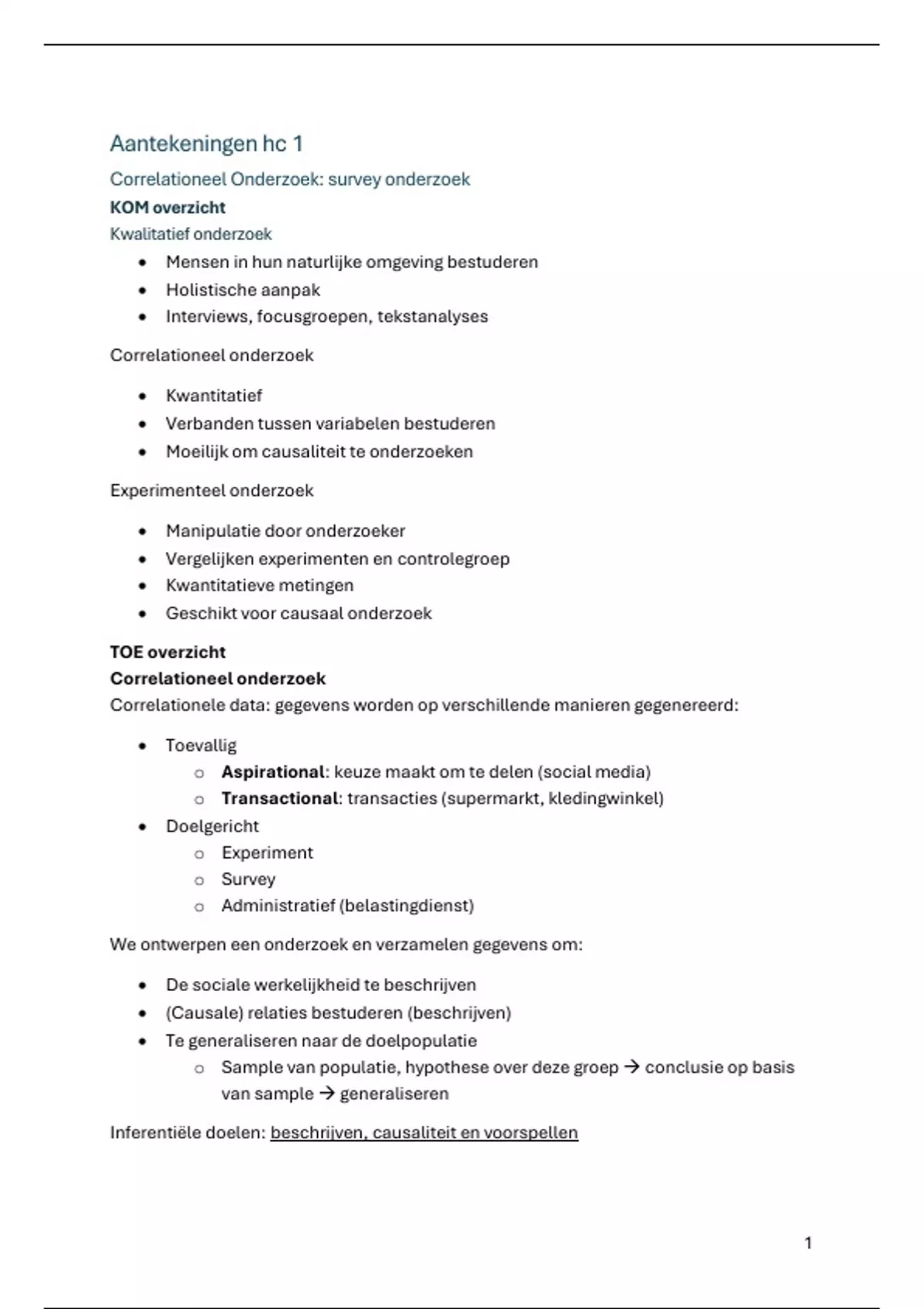Inferentiële doelen: beschrijven, causaliteit en voorspellen