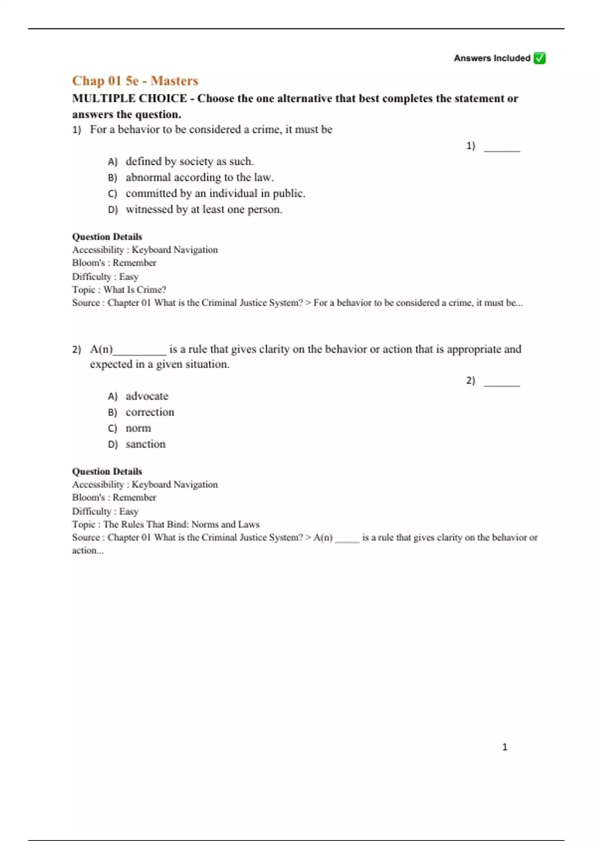 Source : Chapter 01 What is the Criminal Justice System? > For a behavior to be considered a crime, it must be...