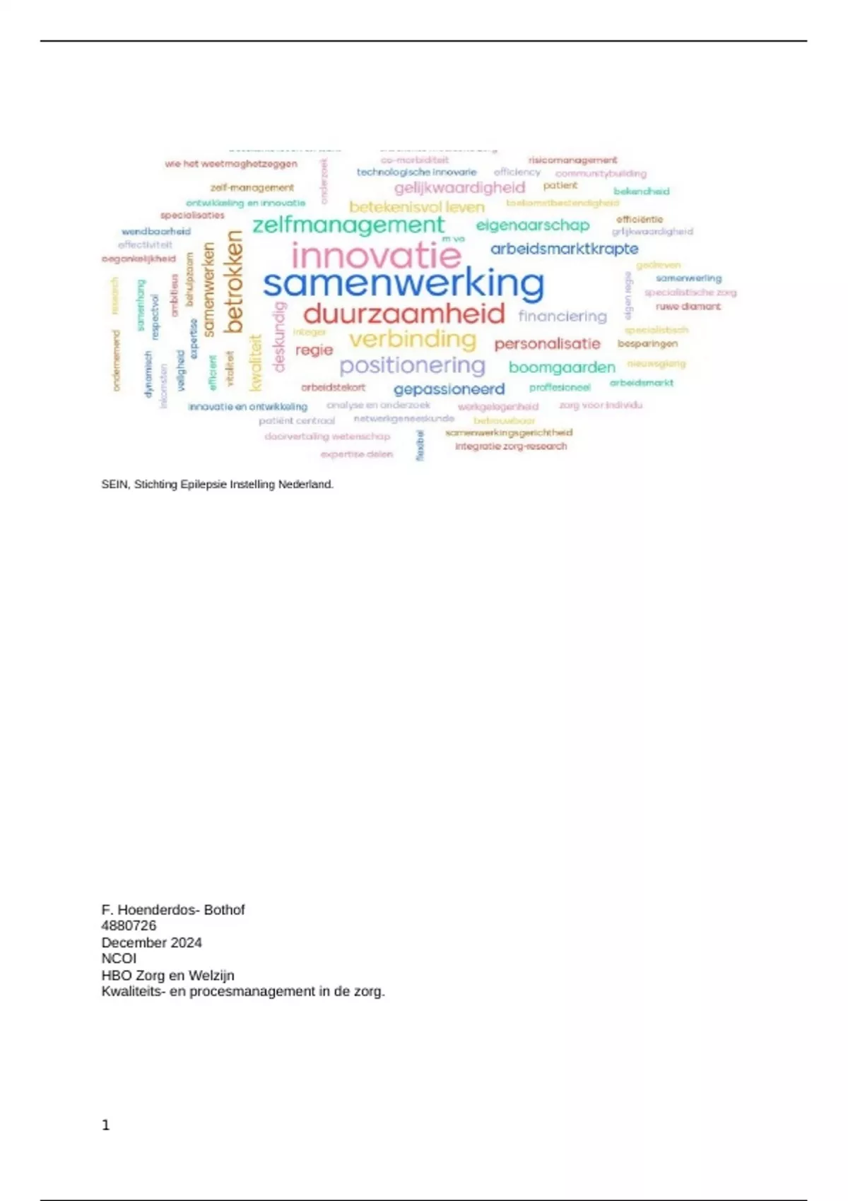 opdracht is geschreven als onderdeel van de opleiding HBO Management in Zorg en Welzijn. Het doel