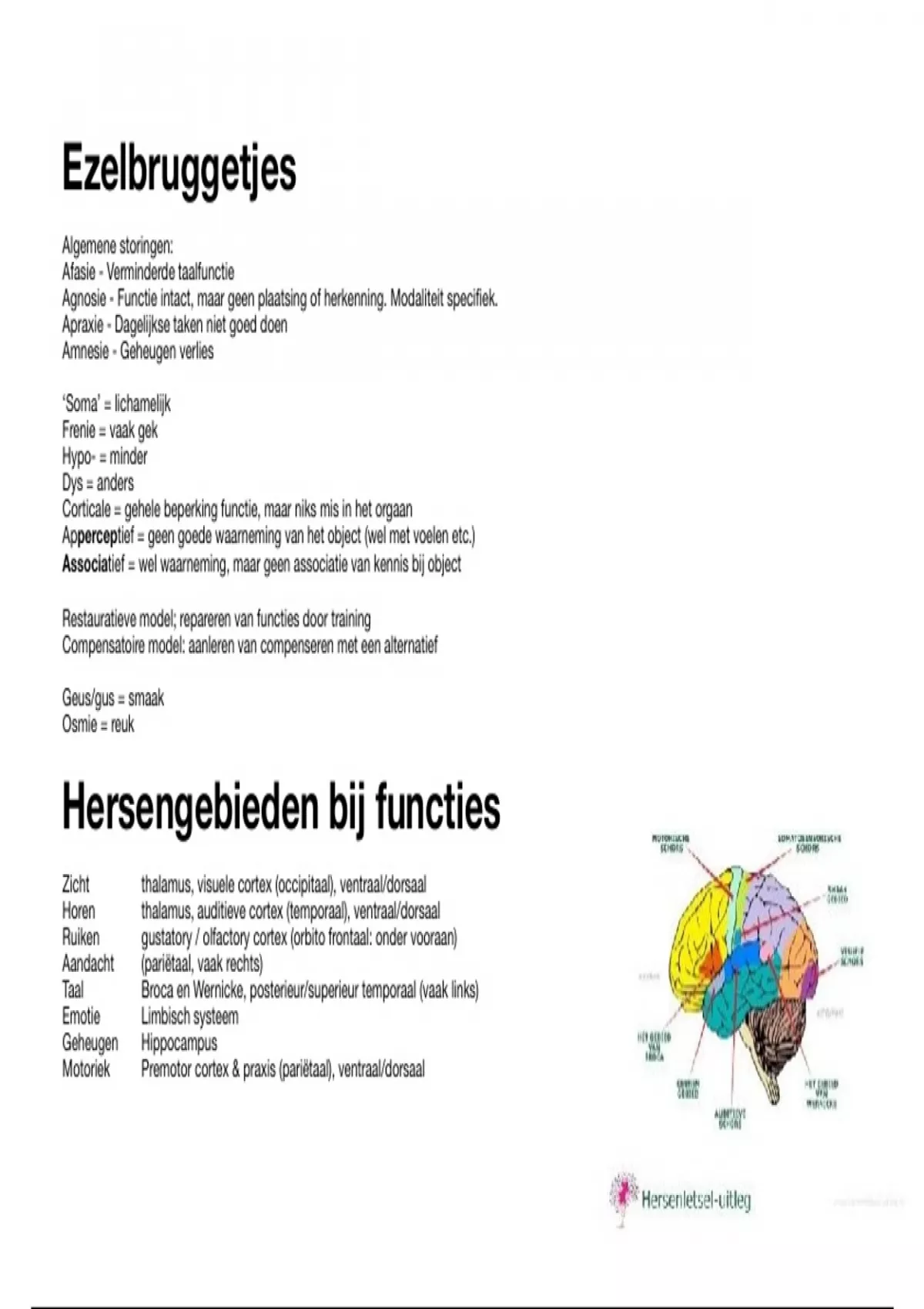 Hersenen en functies: 1. Motor cortex, parietaal Ook belangrijk: