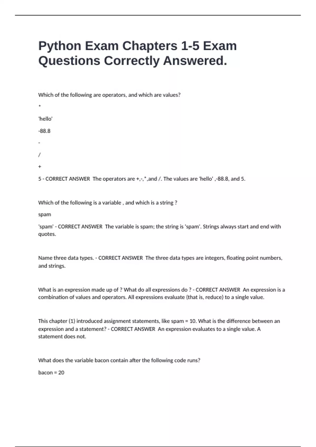 , bacon + 1 - CORRECT ANSWER The bacon variable is set to 20. The bacon + 1 expression does not