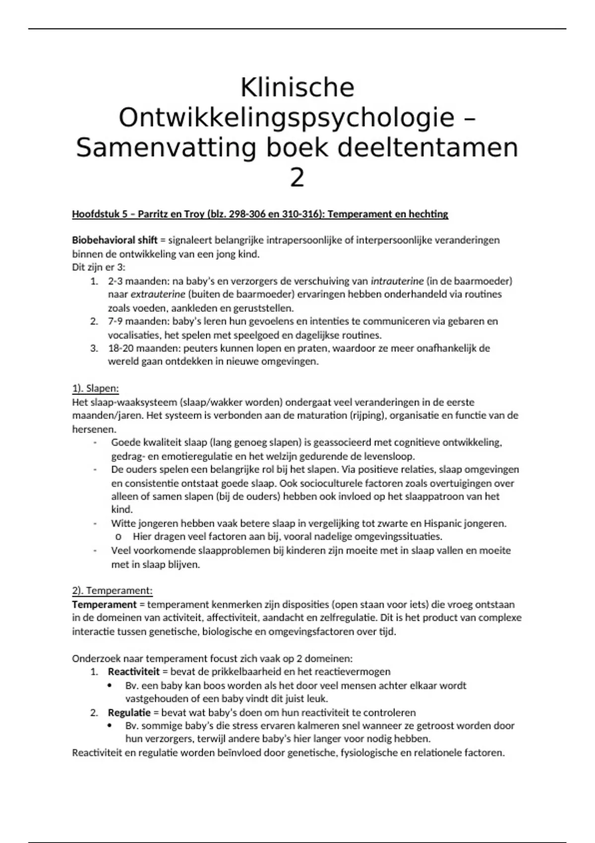 Hoofdstuk 5 – Parritz en Troy (blz. 298-306 en 310-316): Temperament en hechting