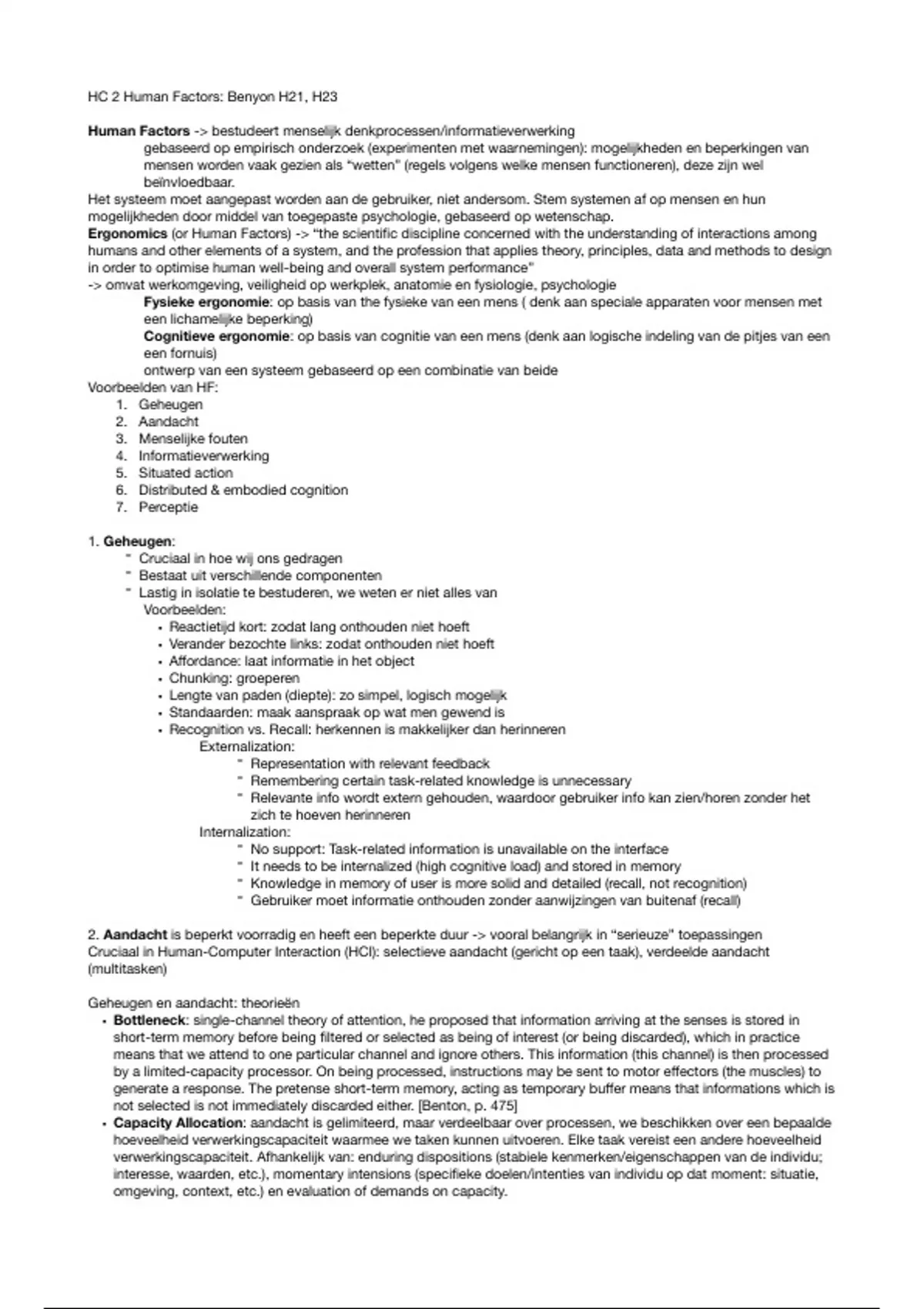 Cruciaal in Human-Computer Interaction (HCI): selectieve aandacht (gericht op een taak), verdeelde aandacht