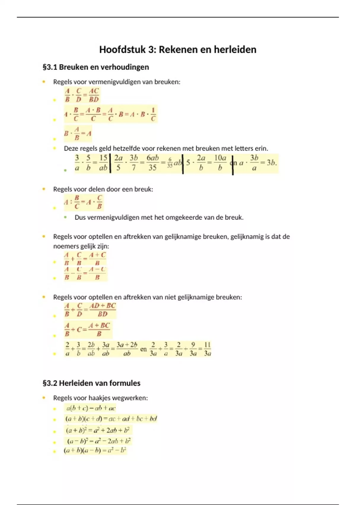Deze regels geld hetzelfde voor rekenen met breuken met letters erin.