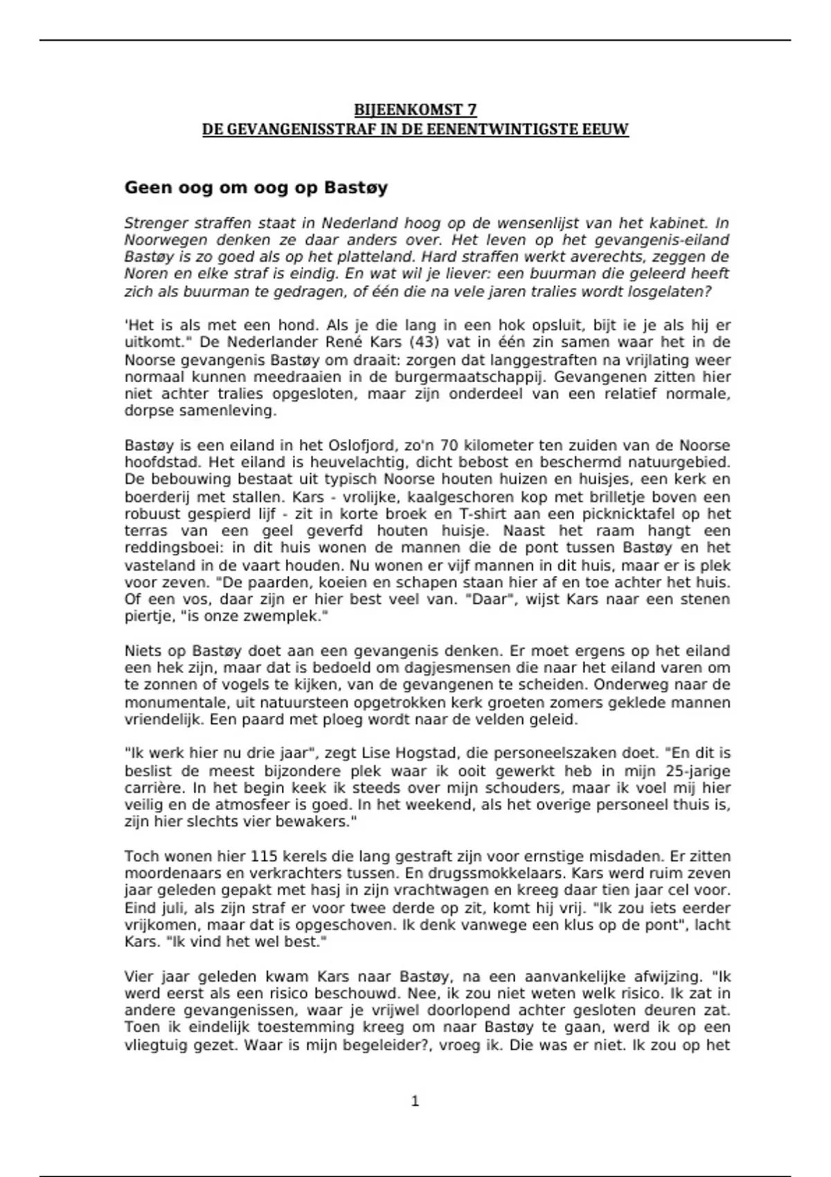 uitwerkingen week 7: DE GEVANGENISSTRAF IN DE EENENTWINTIGSTE EEUW