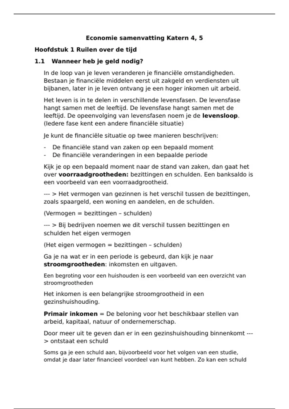 economie samenvatting katern 4 en 5, 7e editie pincode