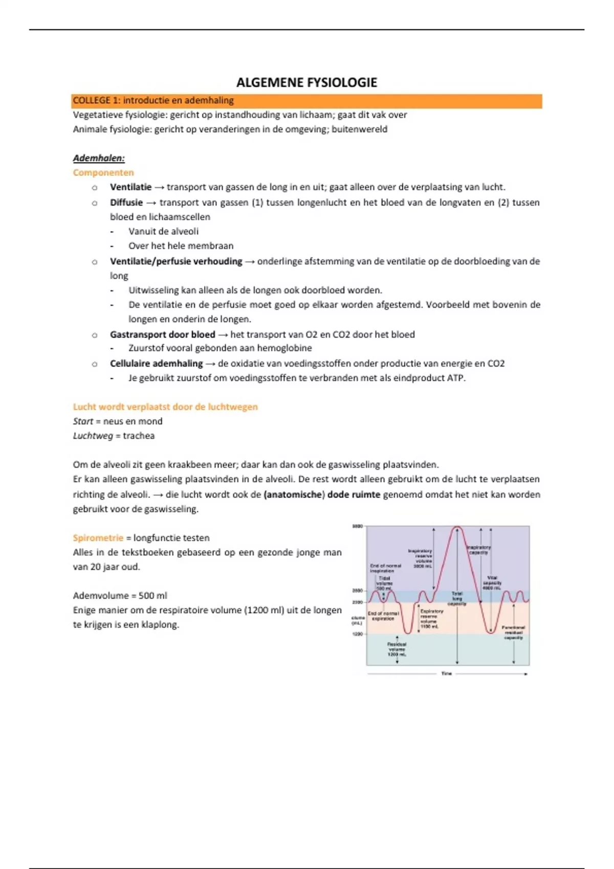 o Ventilatie → transport van gassen de long in en uit; gaat alleen over de verplaatsing van lucht.