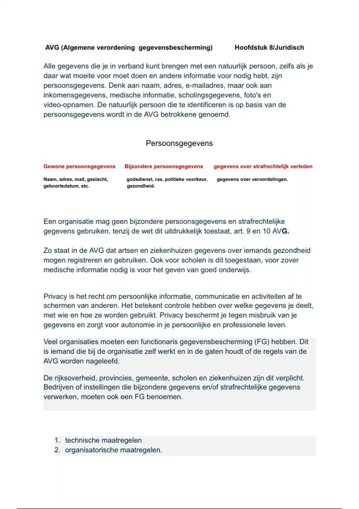 AVG (Algemene verordening gegevensbescherming) Hoofdstuk 8/Juridisch