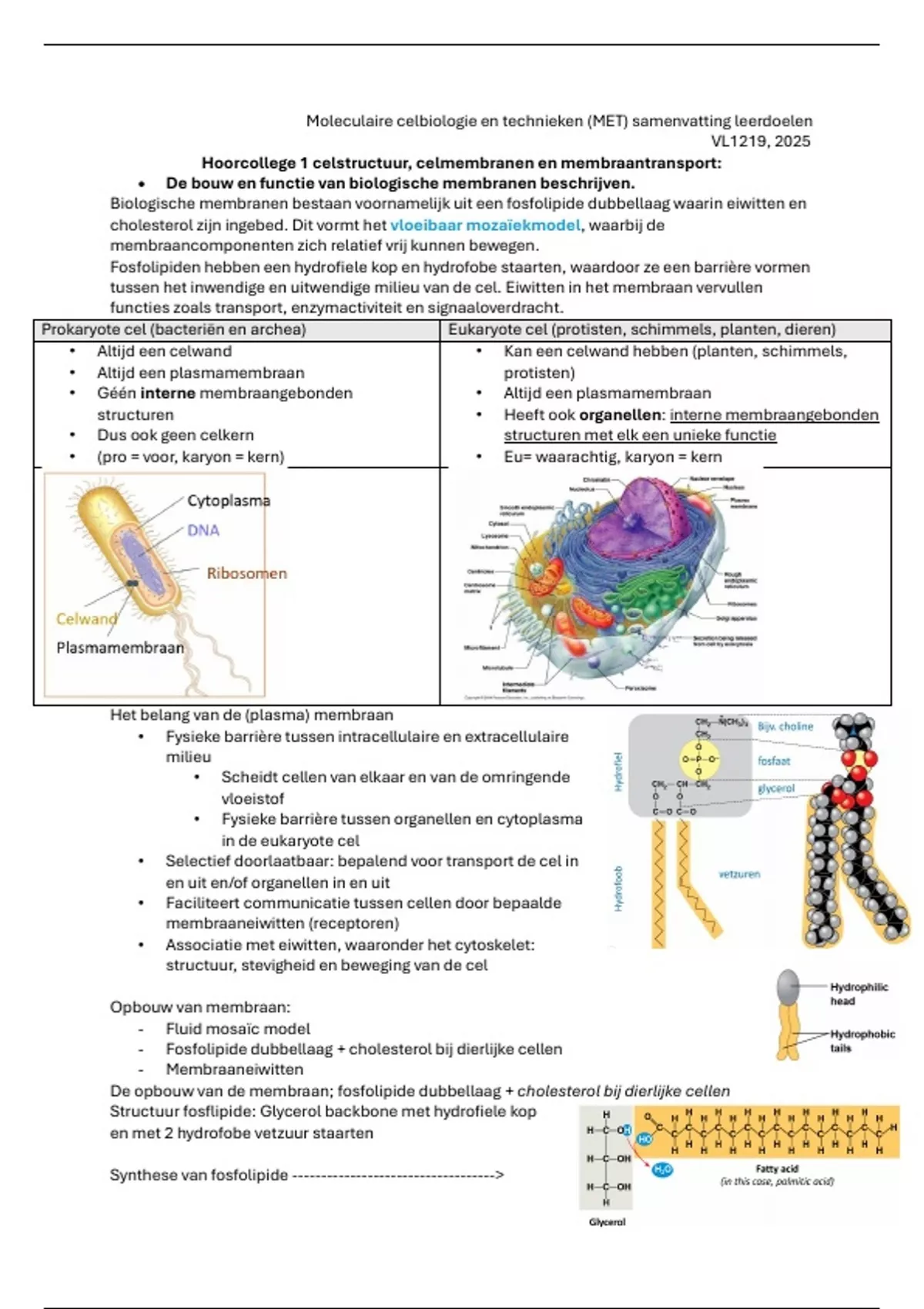 Moleculaire celbiologie en technieken (MET) samenvatting leerdoelen