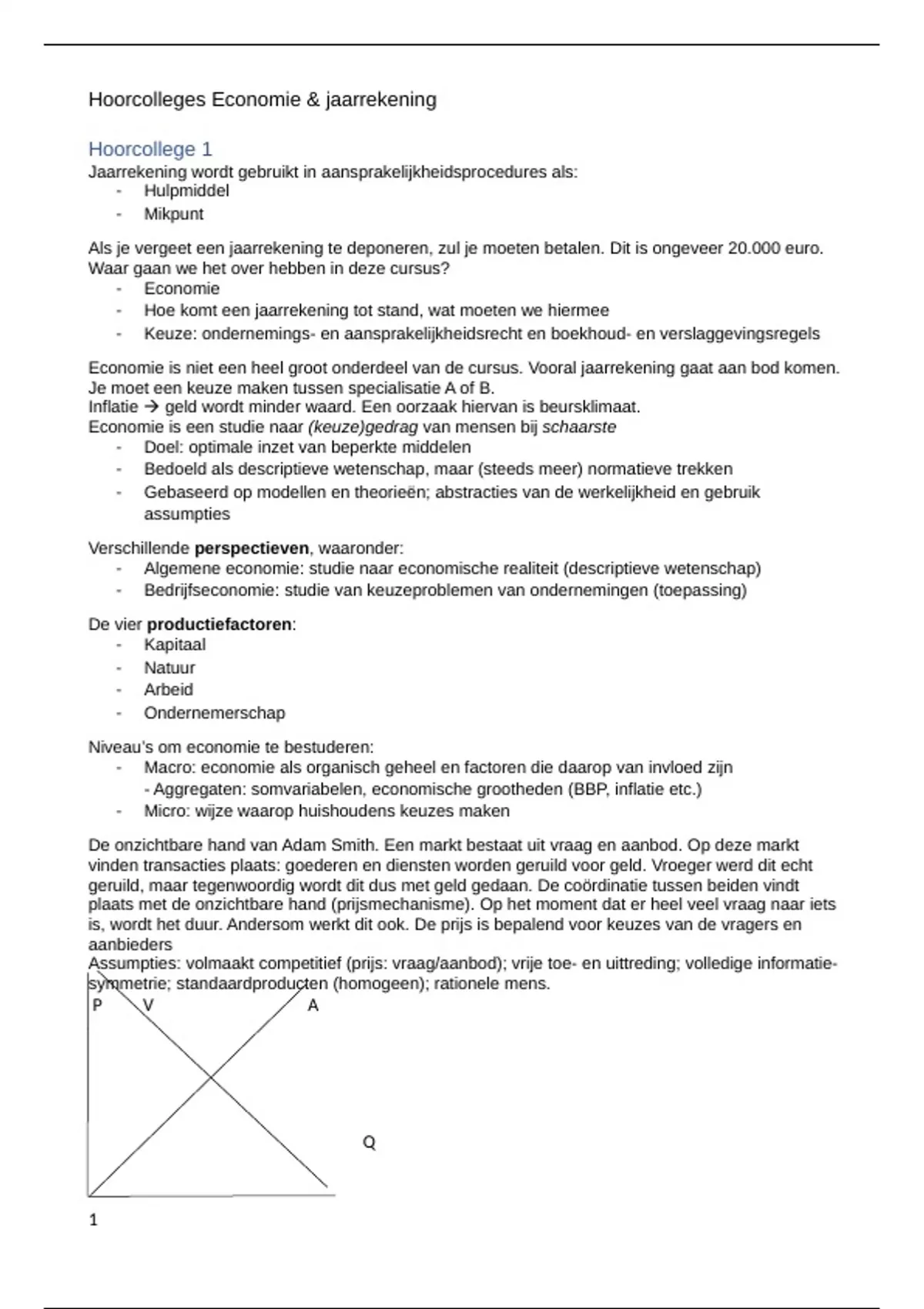 , Hoorcollege 2 Economie I