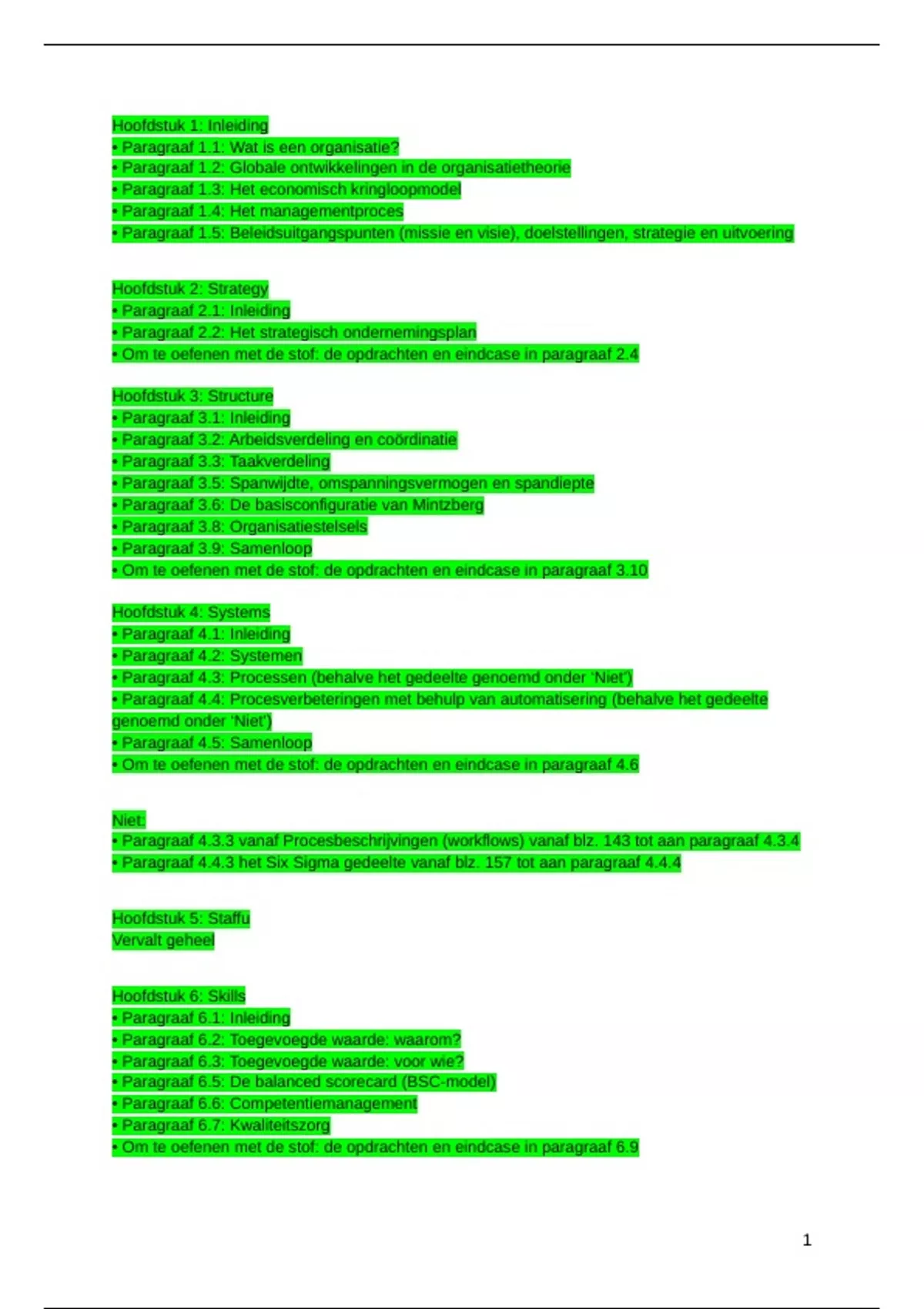 Samenvatting Inleiding organisatiekunde Alle hoofdstukken - Understanding Organisations