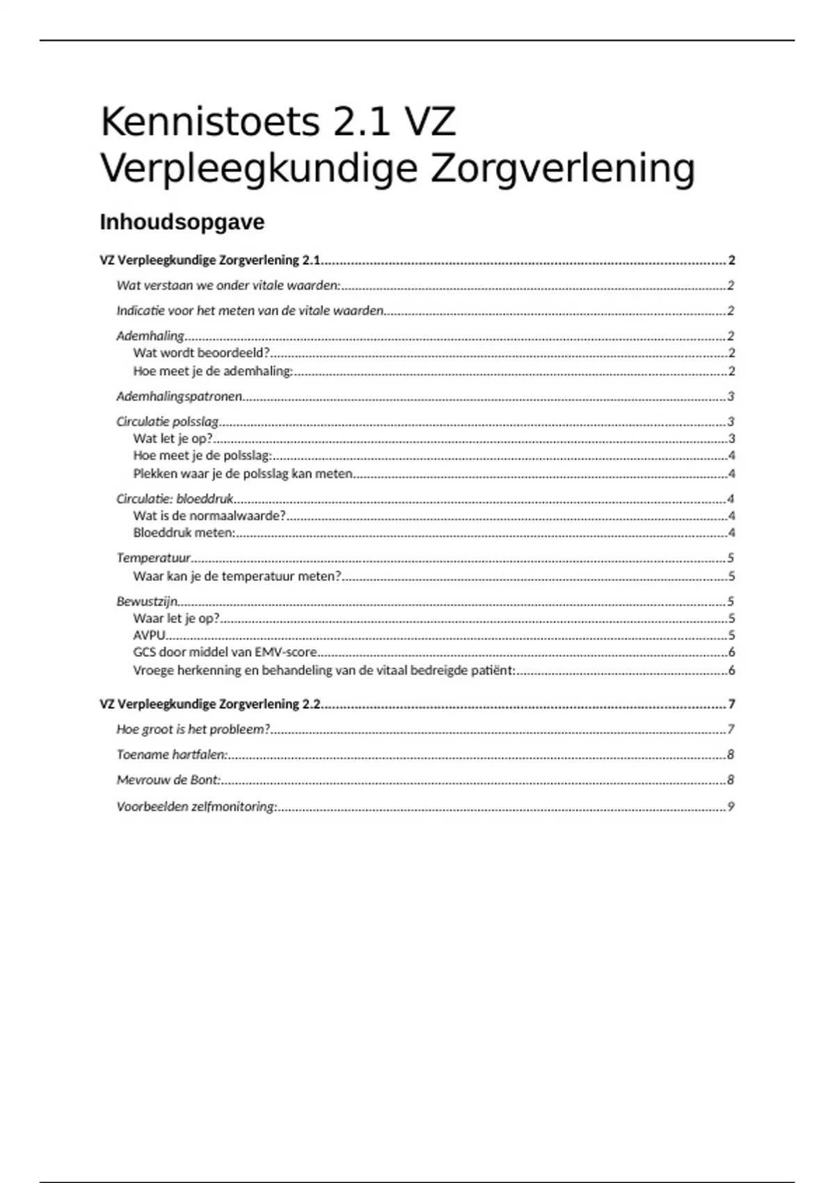 VZ Verpleegkundige Zorgverlening 2.2........................................................................................................... 7