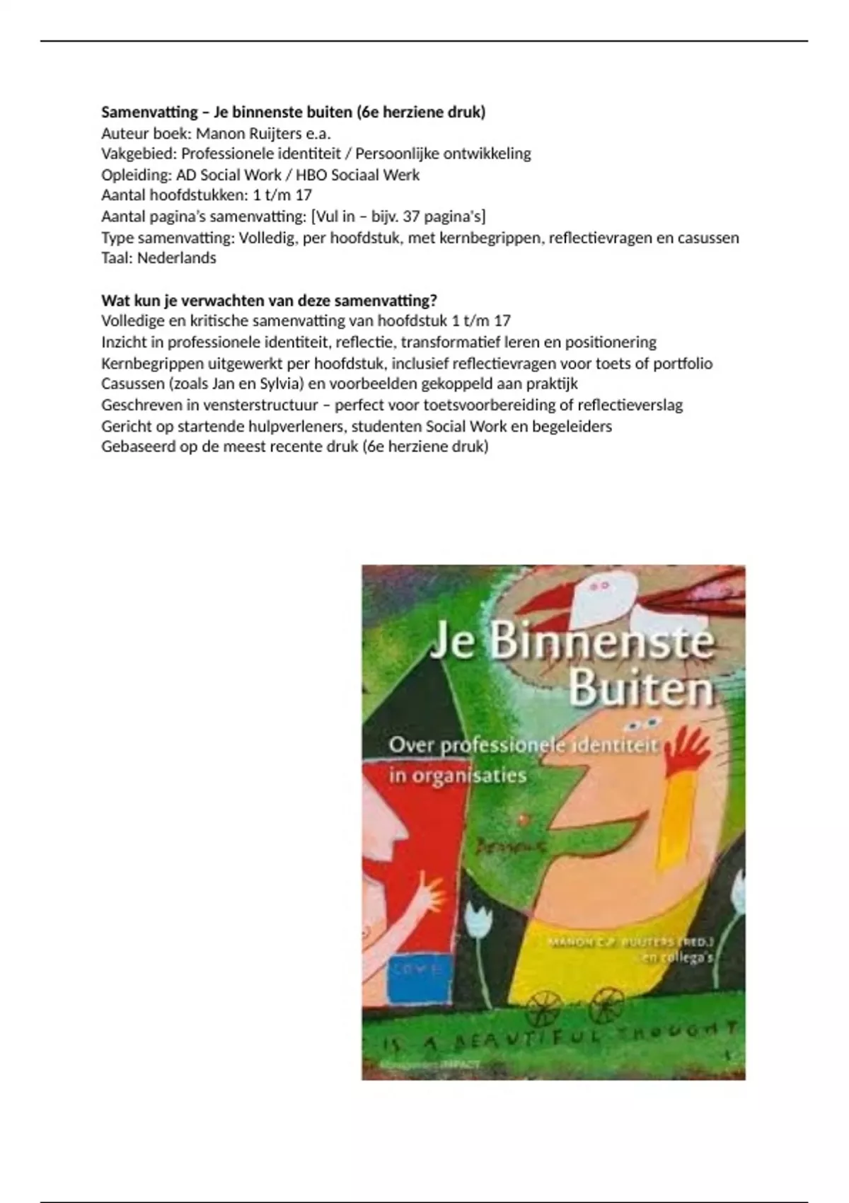 Type samenvatting: Volledig, per hoofdstuk, met kernbegrippen, reflectievragen en casussen