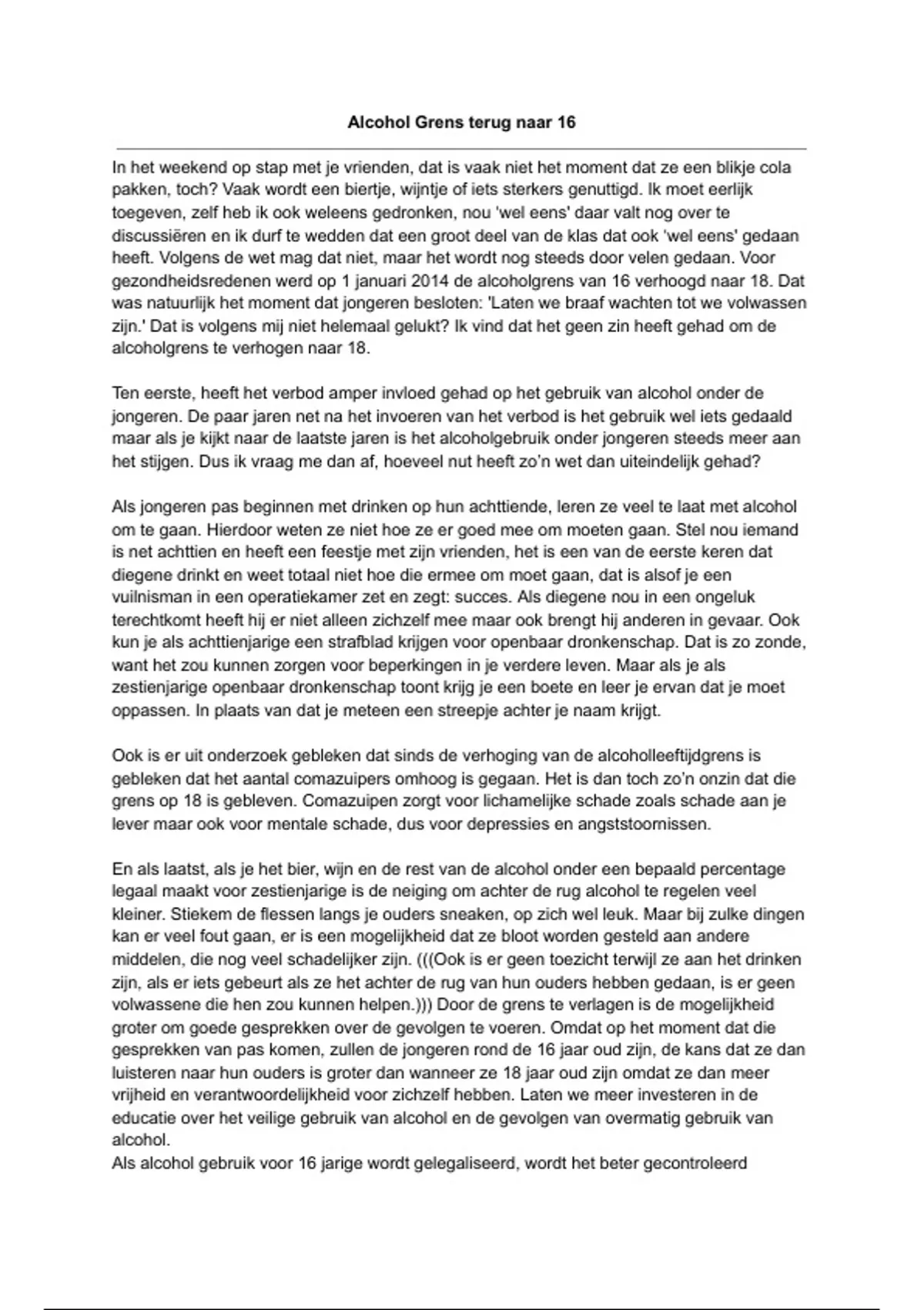 Als alcohol gebruik voor 16 jarige wordt gelegaliseerd, wordt het beter gecontroleerd