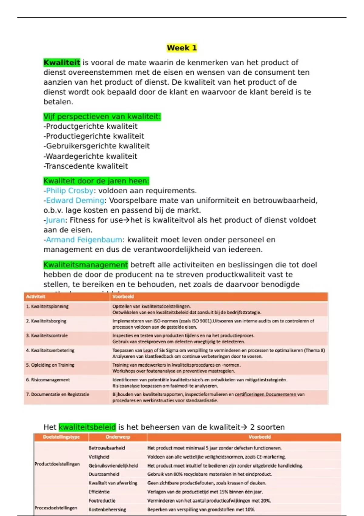Het kwaliteitsbeleid is het beheersen van de kwaliteit 2 soorten