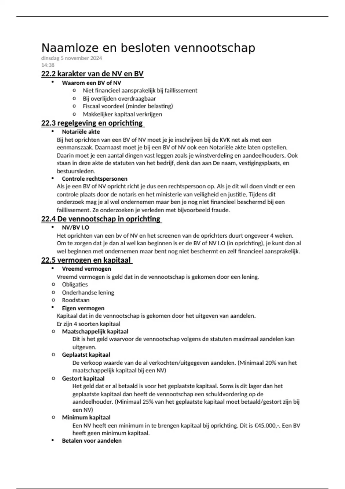 22.2 karakter van de NV en BV