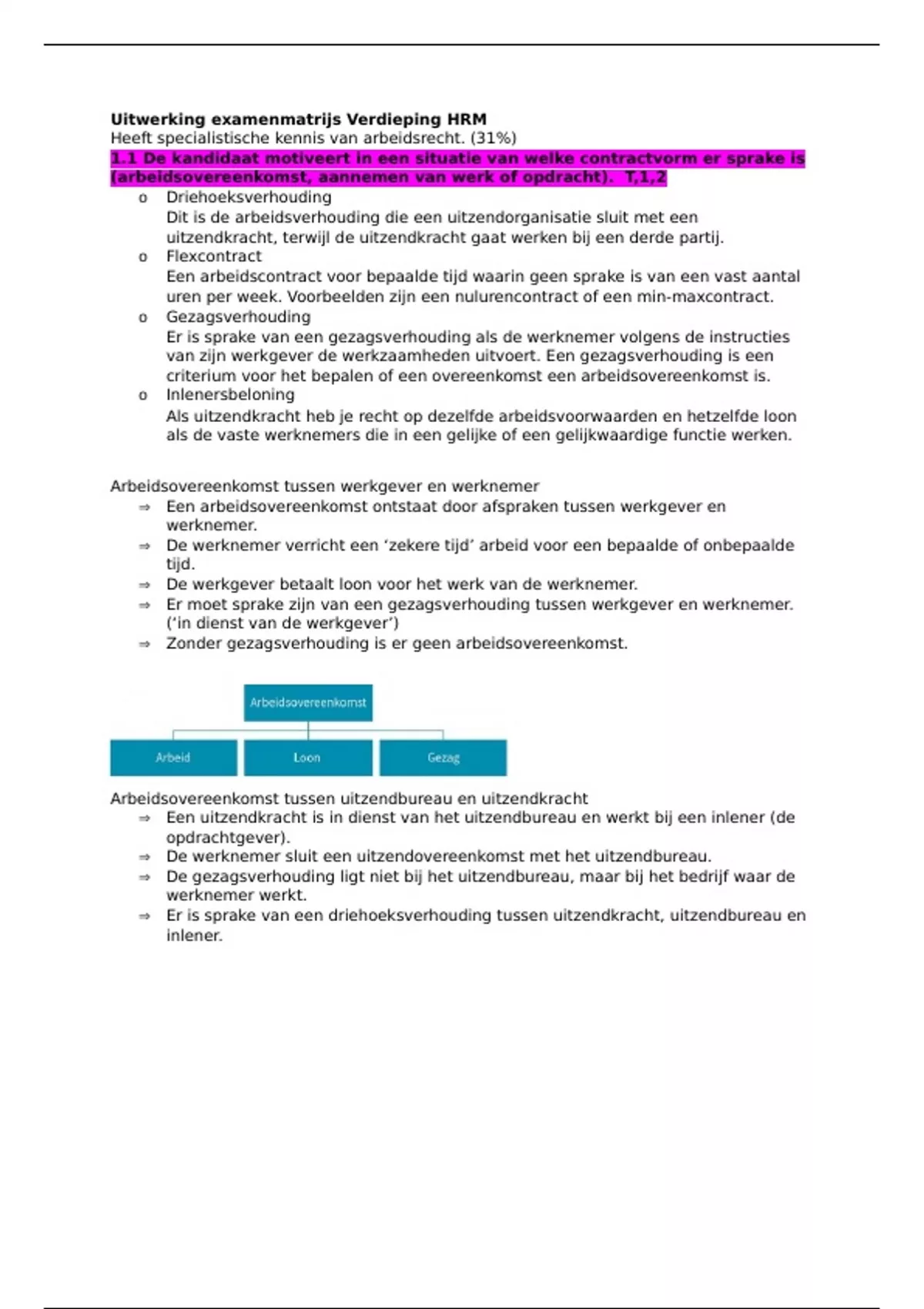1.1 De kandidaat motiveert in een situatie van welke contractvorm er sprake is