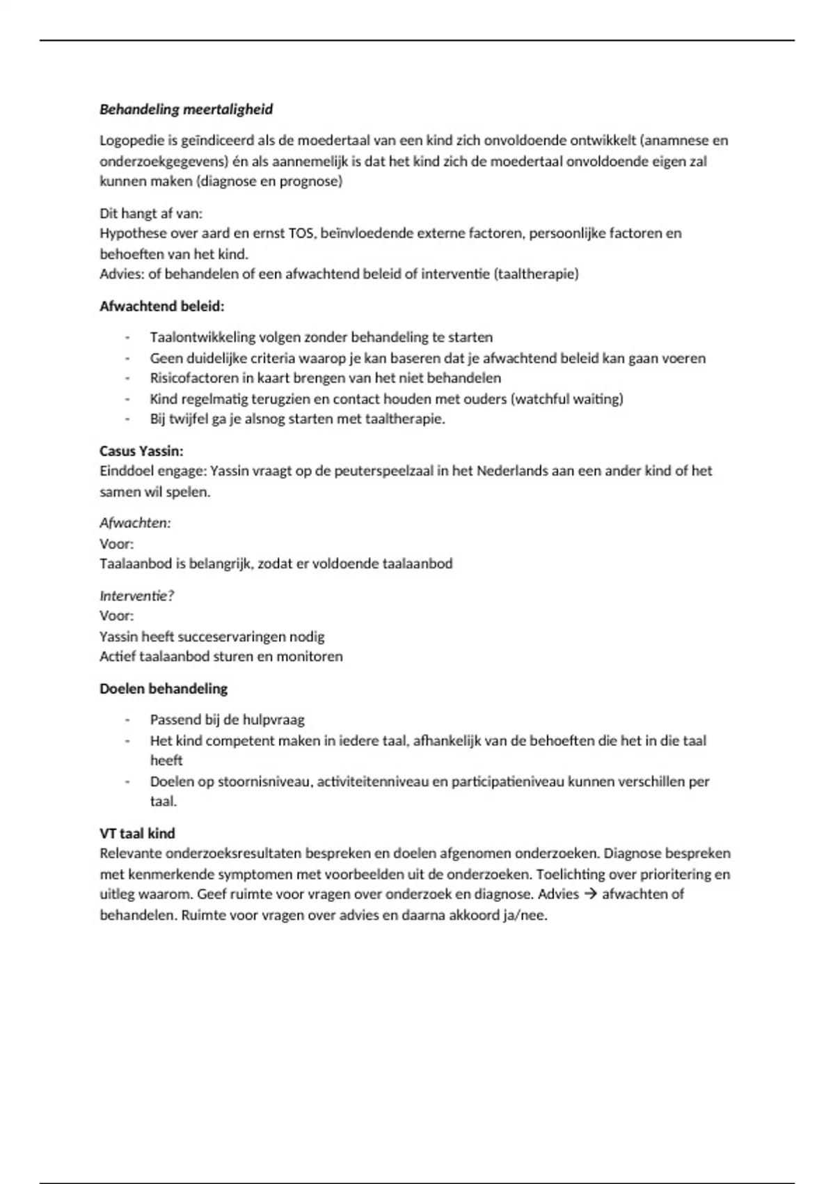 Advies: of behandelen of een afwachtend beleid of interventie (taaltherapie)