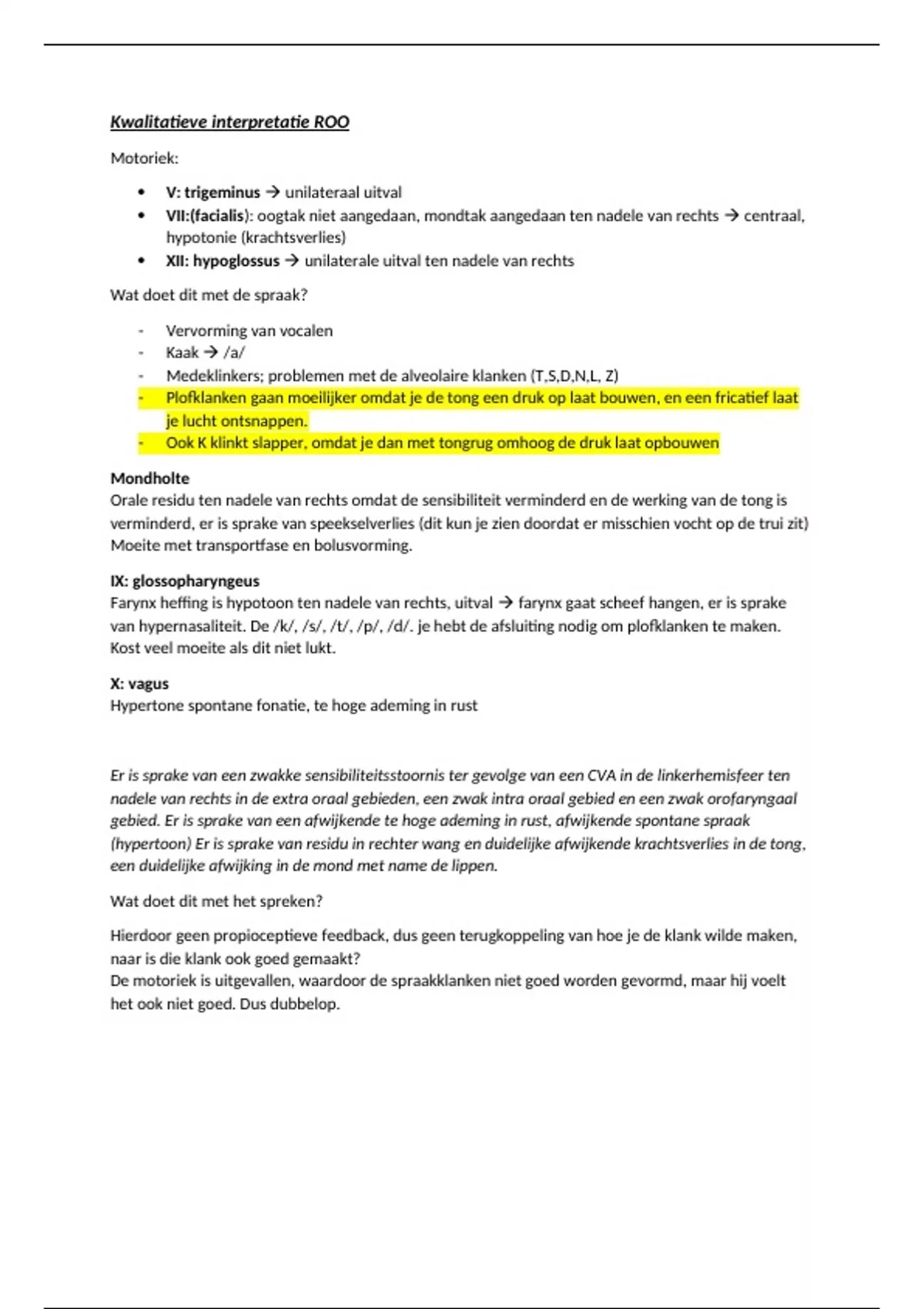 Farynx heffing is hypotoon ten nadele van rechts, uitval farynx gaat scheef hangen, er is sprake