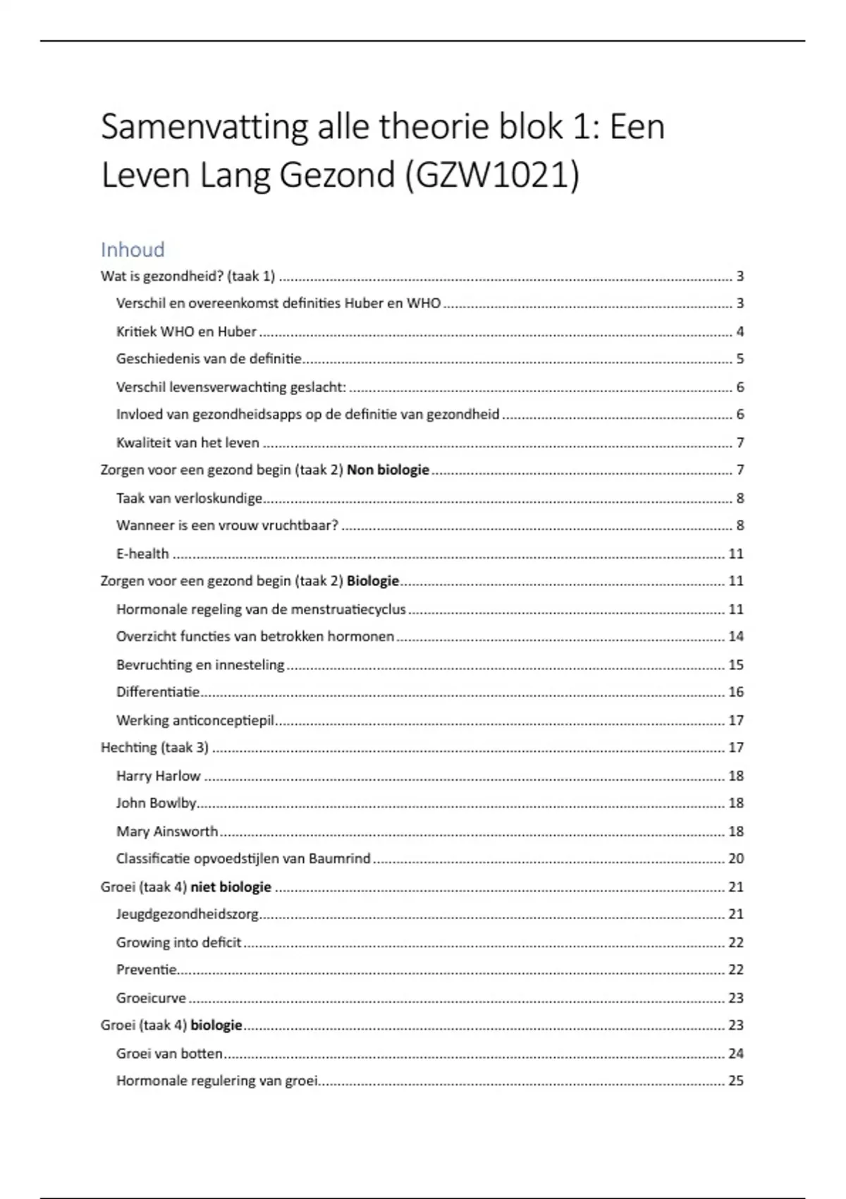 GZW 1021: Een Leven Lang Gezond, complete samenvatting en uitgebreide oefentoets