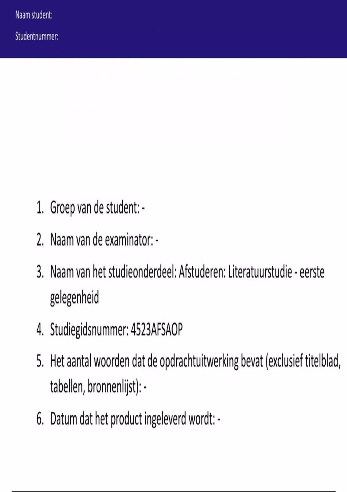 3. Naam van het studieonderdeel: Afstuderen: Literatuurstudie - eerste
