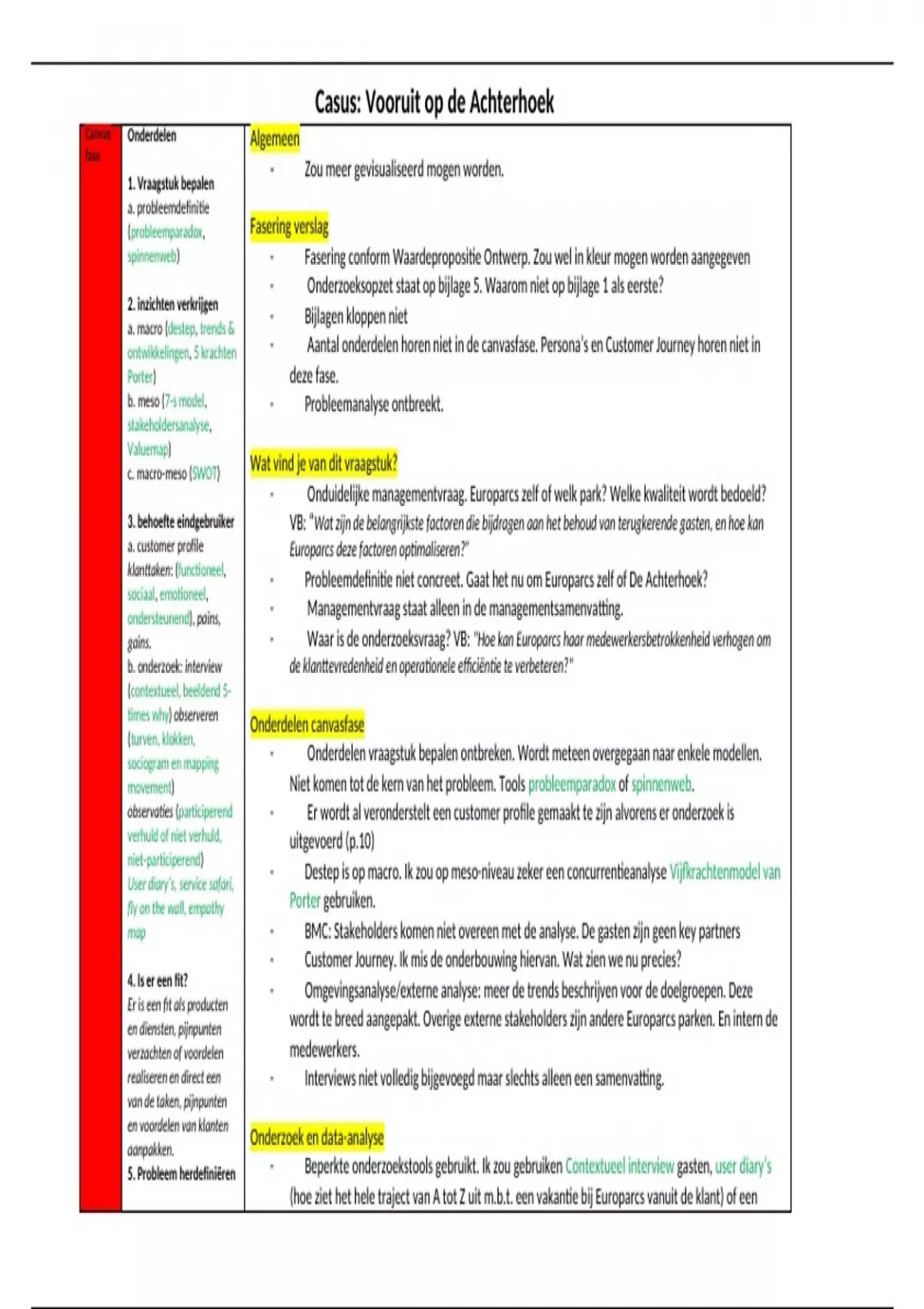 ontwikkelingen, 5 krachten - 👎 Aantal onderdelen horen niet in de canvasfase. Persona’s en Customer Journey horen niet in
