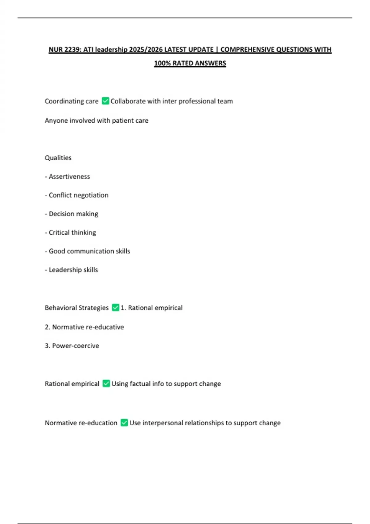 NUR 2239: ATI leadership 2025/2026 LATEST UPDATE | COMPREHENSIVE QUESTIONS WITH