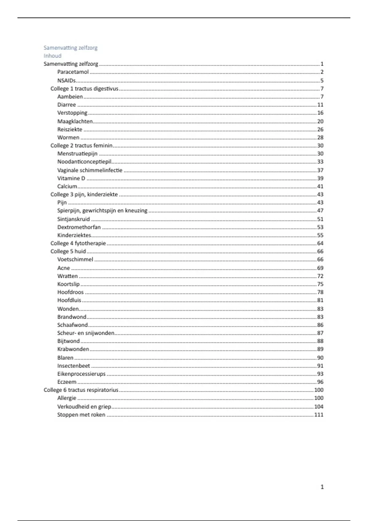 Samenvatting zelfzorg ............................................................................................................................................... 1