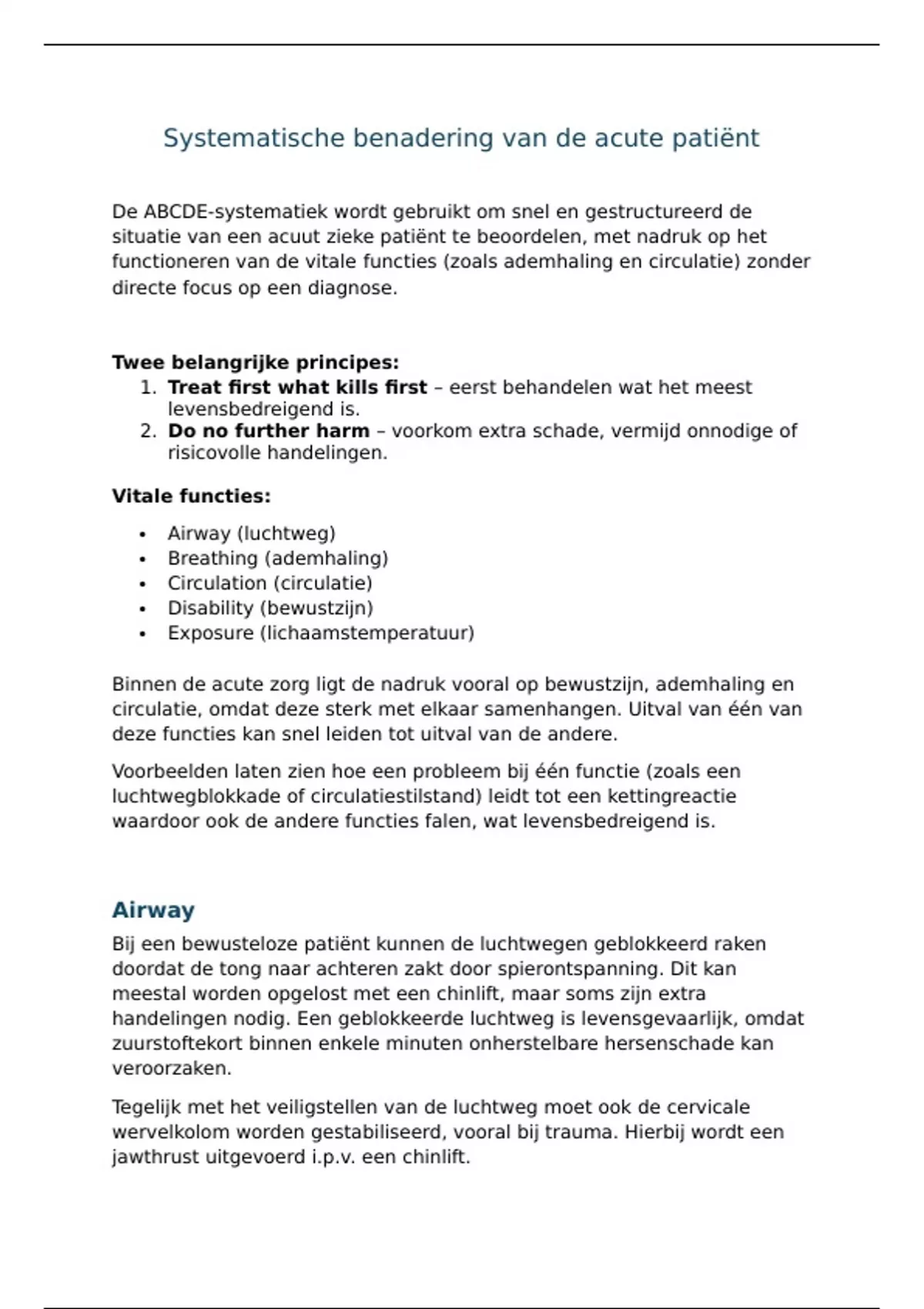 Samenvatting Basis acute zorg: Eerste opvang acute patient