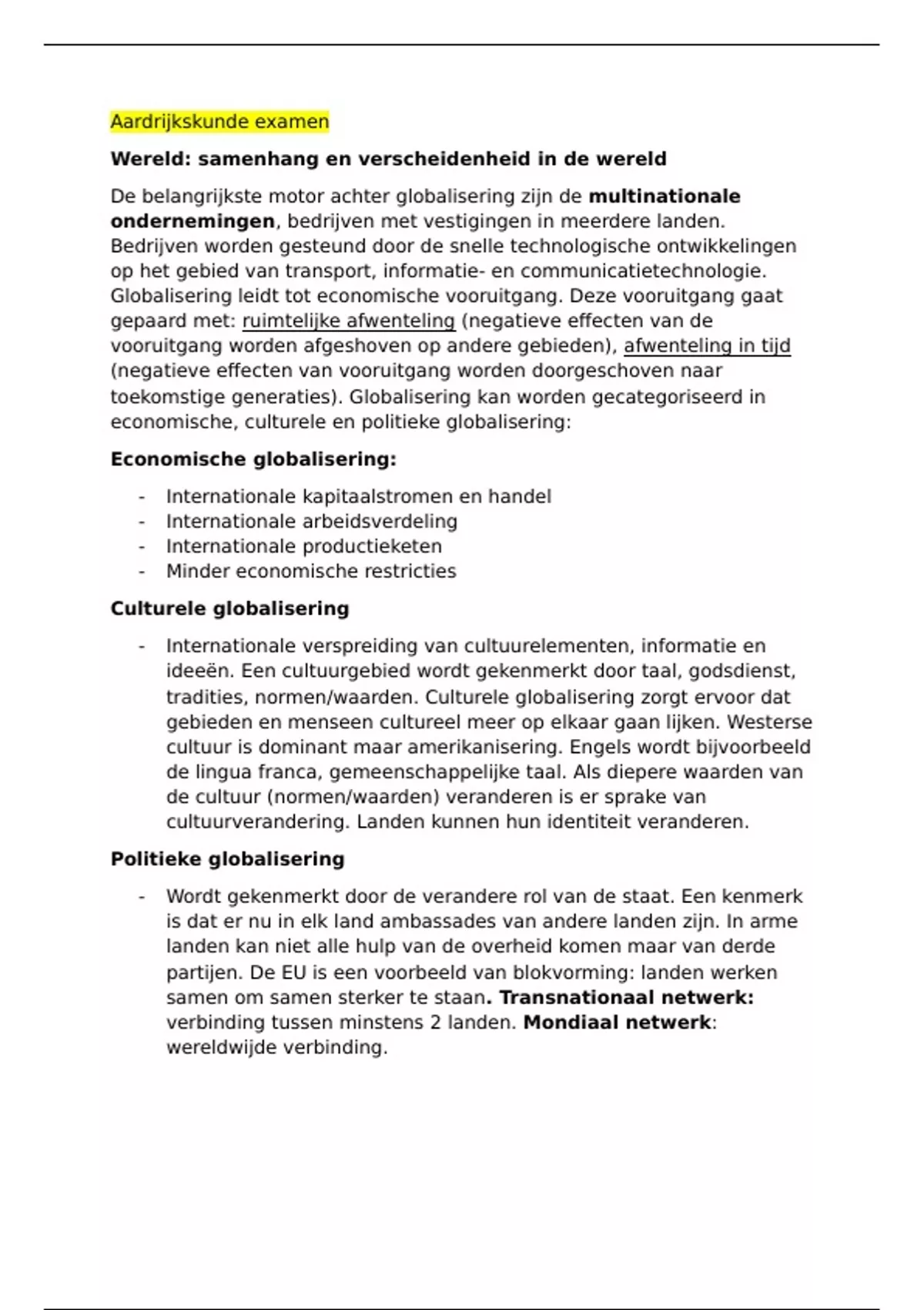 economische, culturele en politieke globalisering: