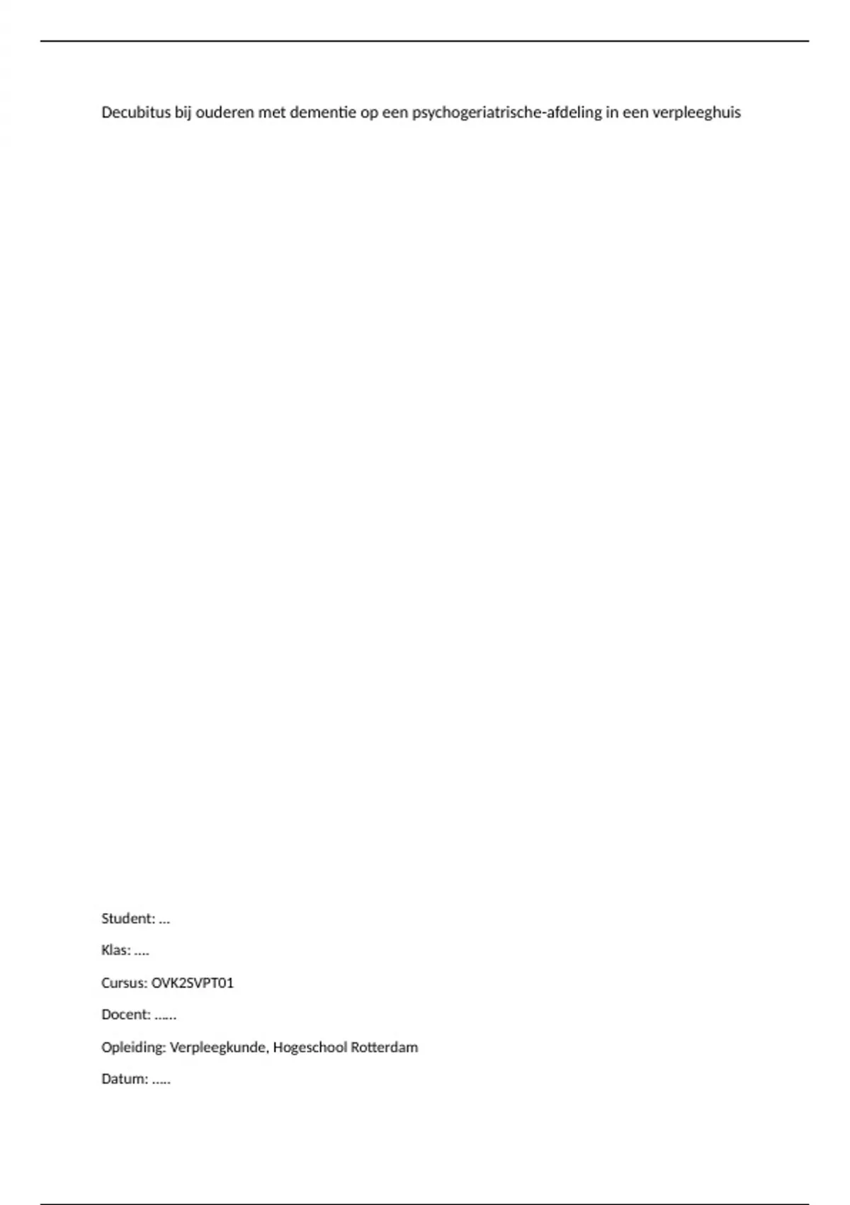 In dit verslag wordt het onderwerp "Decubitus bij ouderen met dementie op een psychogeriatrische