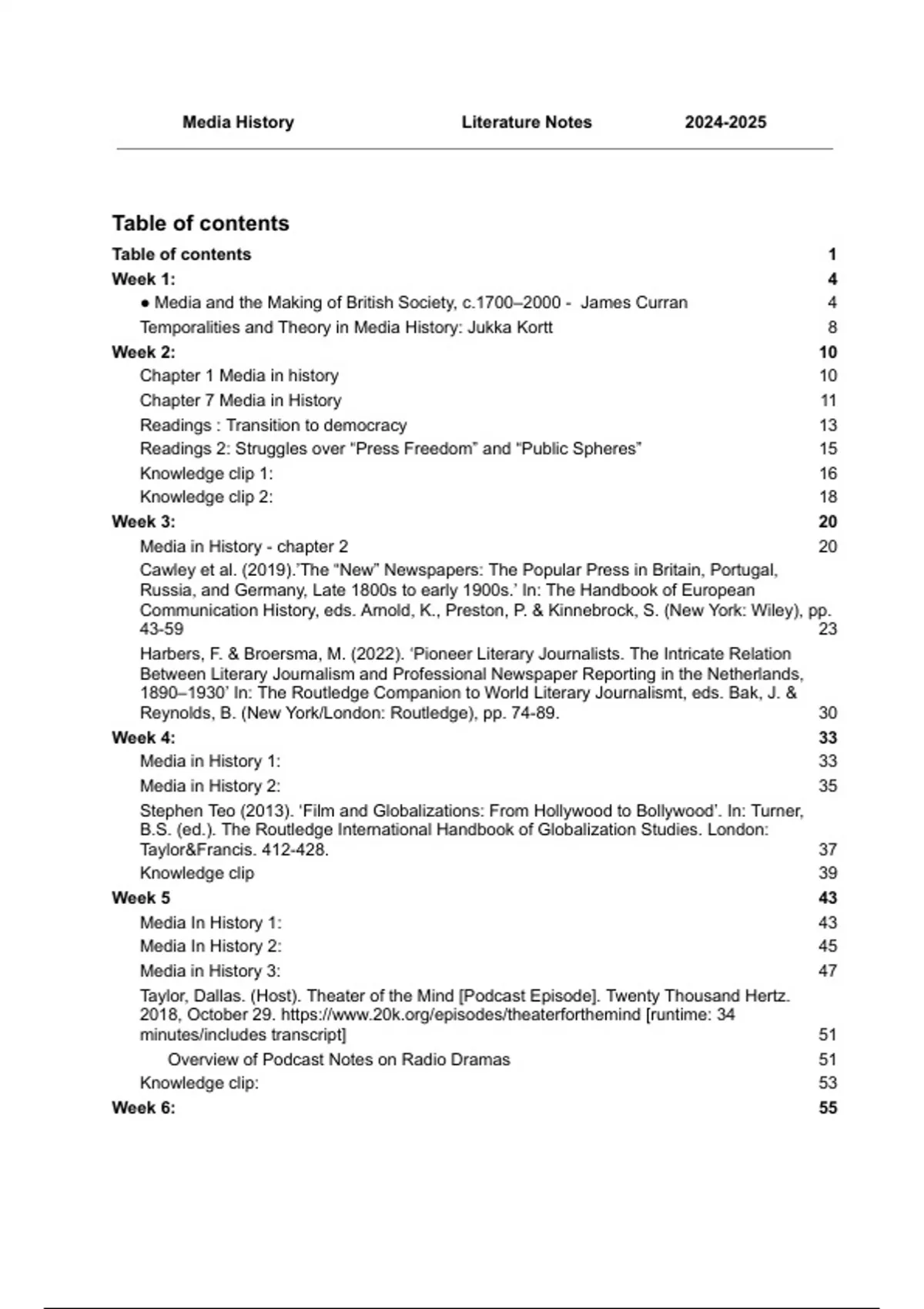 Media History​ ​ ​ Literature Notes​ ​ 2024-2025